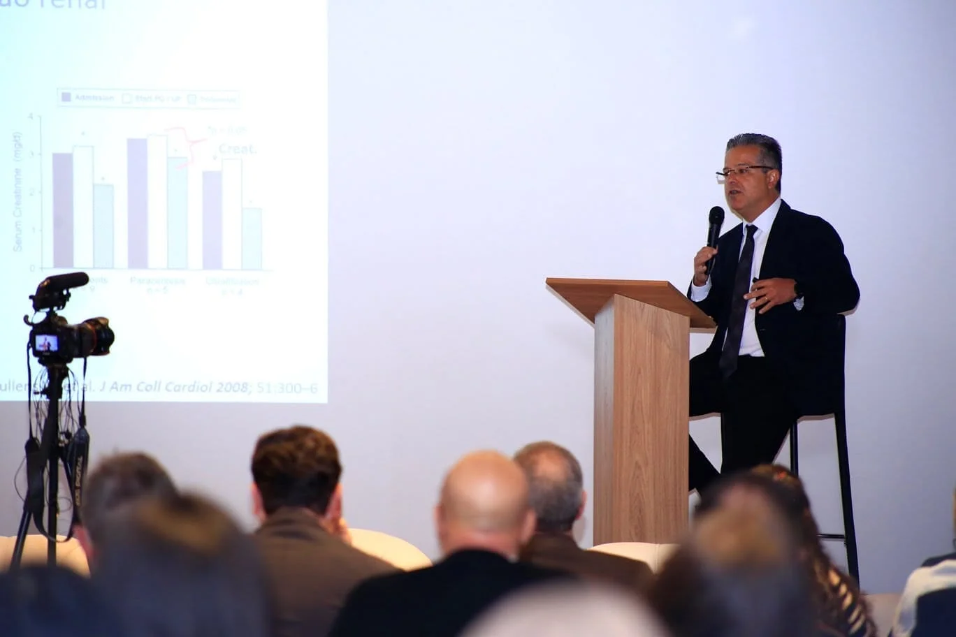 Entre os palestrantes estava o Presidente da Sociedade Brasileira de Cardiologia, Dr. Oscar Dutra, que destacou a importância do evento para a região. “O Congresso significa a divulgação de conceitos e de novidades dentro da cardiologia, que envolve não só o uso de drogas e medicamentos, mas também a possibilidade de que a população tenha a noção de que aqui em Passo Fundo e na região existem pessoas que fazem o tratamento completo daquilo que mais nos aflige, que é a síndrome isquêmica aguda, ou seja, infarto agudo do miocárdio, por conta de que existem serviços de cardiologia intervencionista gabaritados, com profissionais de altíssima qualidade científica”, disse.