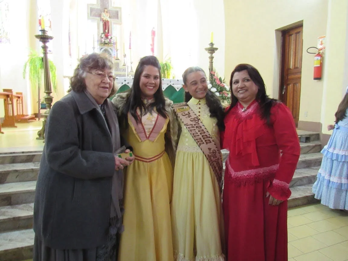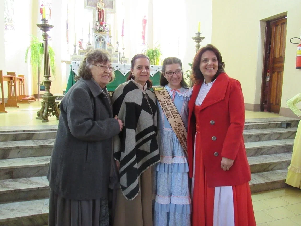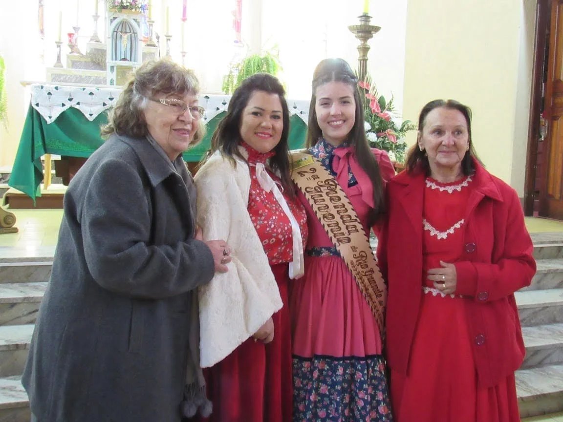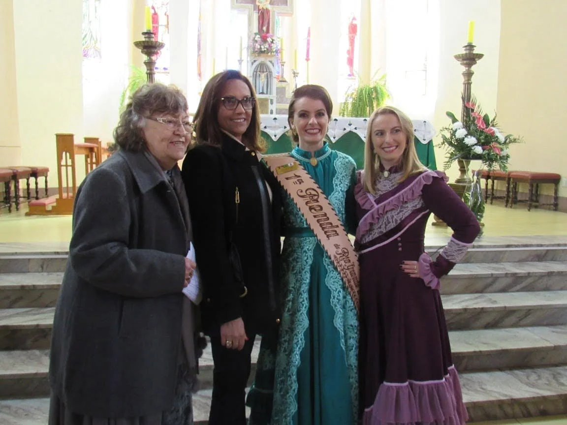 Durante a manhã as prendas e seus familiares participaram da Missa na Igreja Bom Jesus, onde receberam as placas de suas madrinhas. Logo após, elas foram recepcionadas para o almoço no CTG Unidos pela Tradição Rio-Grandense. No CTG, as Prendas receberam mimos preparados por Iolanda e também a homenagearam por proporcionar a elas este momento. “Agradecemos imensamente a Iolanda por essa homenagem entregue às Prendas do Estado em todos estes anos. Assim como nós, ela também representa a força, a garra e a determinação da mulher gaúcha”, disse a 1ª Prenda Adulta Gabriela Sarturi Ringão, do CTG Noel Guarany, de Santa Maria.