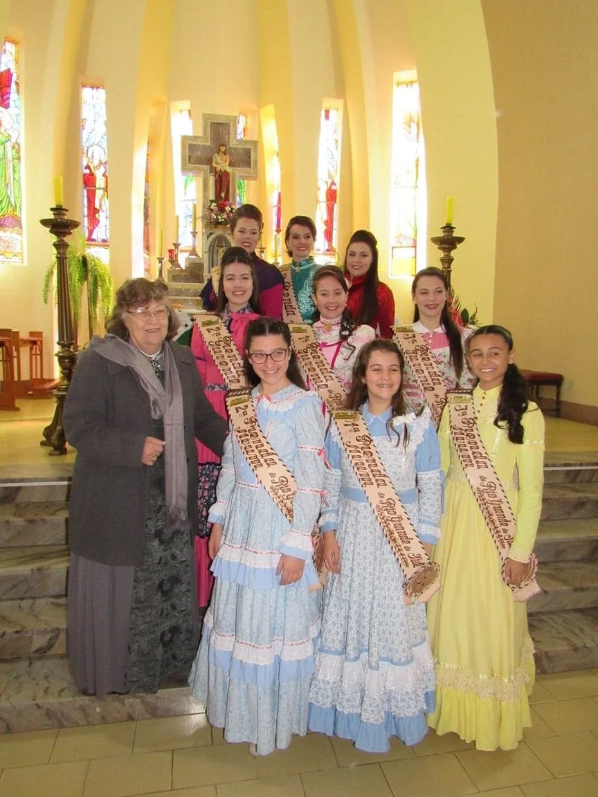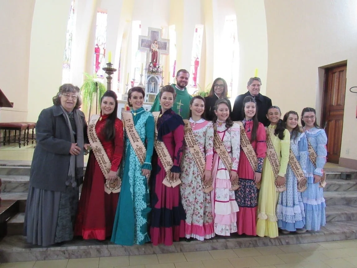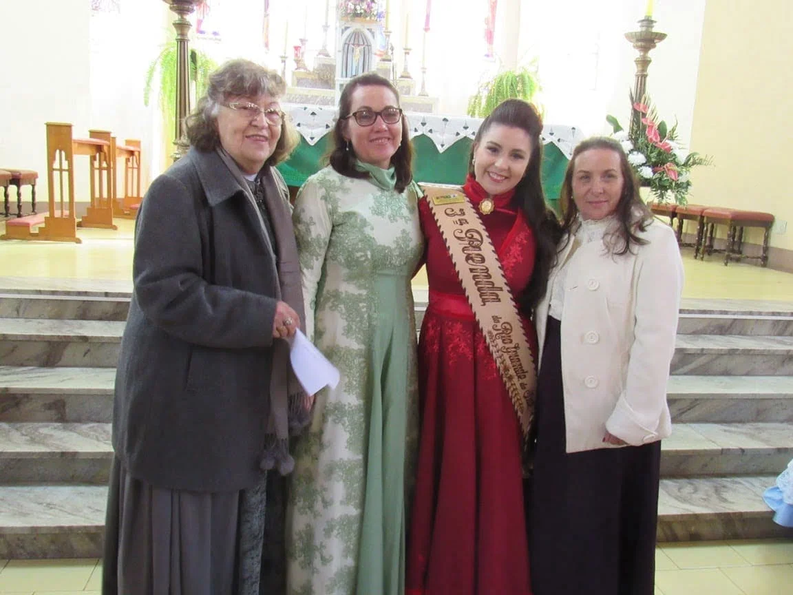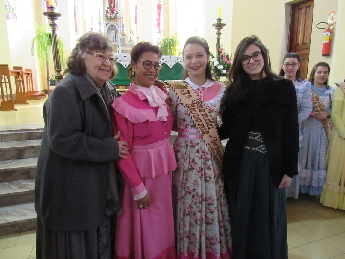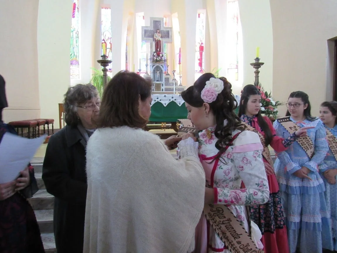 Durante a manhã as prendas e seus familiares participaram da Missa na Igreja Bom Jesus, onde receberam as placas de suas madrinhas. Logo após, elas foram recepcionadas para o almoço no CTG Unidos pela Tradição Rio-Grandense. No CTG, as Prendas receberam mimos preparados por Iolanda e também a homenagearam por proporcionar a elas este momento. “Agradecemos imensamente a Iolanda por essa homenagem entregue às Prendas do Estado em todos estes anos. Assim como nós, ela também representa a força, a garra e a determinação da mulher gaúcha”, disse a 1ª Prenda Adulta Gabriela Sarturi Ringão, do CTG Noel Guarany, de Santa Maria.