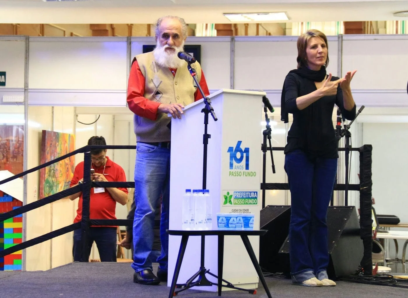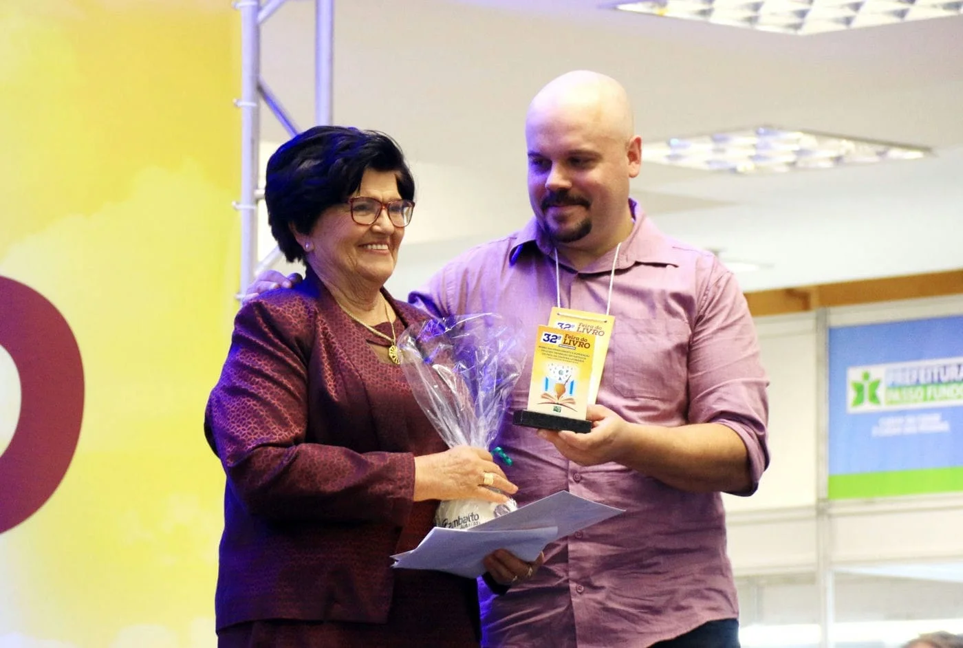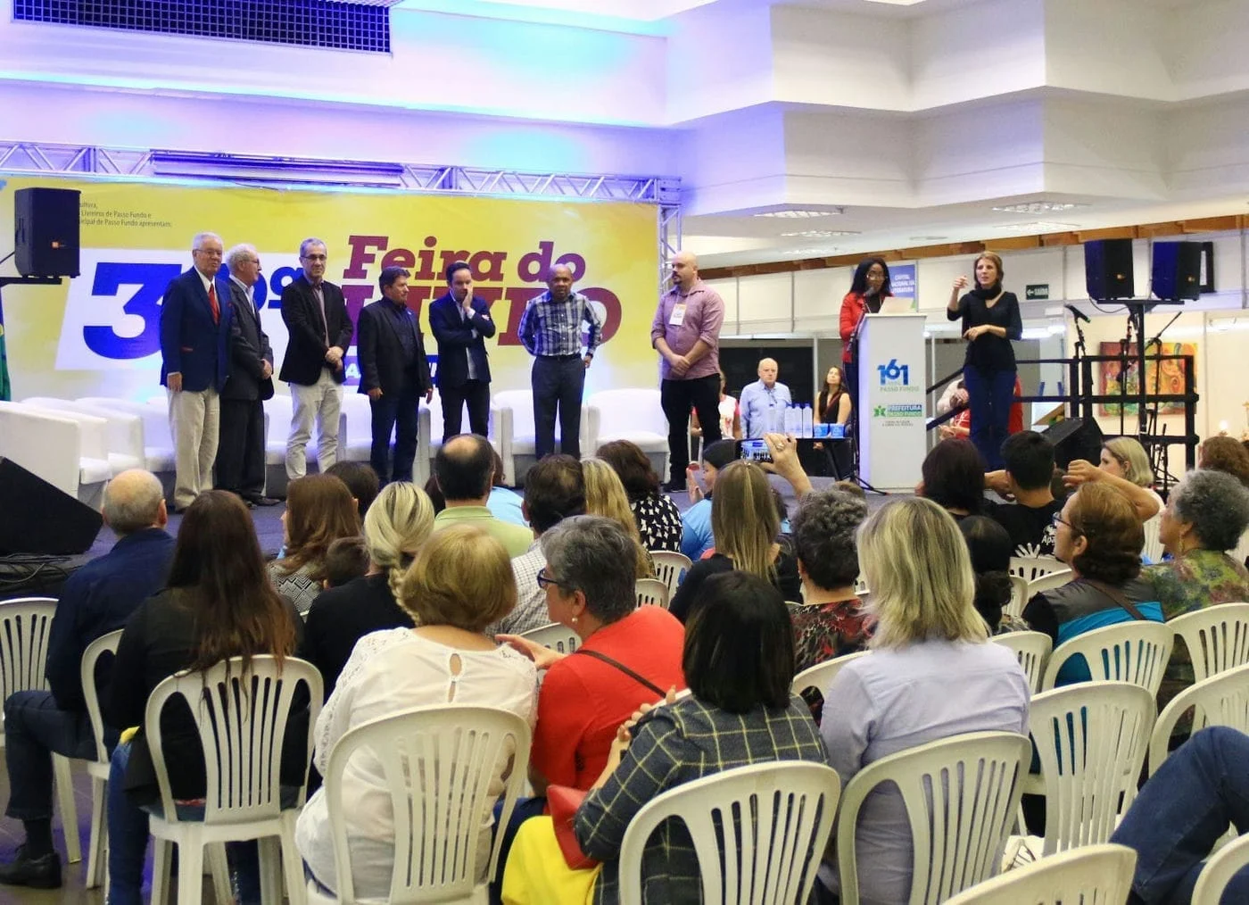 O vereador Pedro Danieli cumprimentou os idealizadores da feira. “Estamos no caminho certo e, se Deus quiser, no próximo ano teremos mais uma feira!”, disse. Ele ainda aproveitou o momento para destacar o projeto Gabinete da Leitura, criado pela Câmara de Vereadores de Passo Fundo, que já entregou 700 livros em 7 escolas da cidade. O Secretário de Cultura de Passo Fundo, Pedro Almeida, representou o Prefeito Luciano Azevedo. Ele cumprimentou o Patrono da Feira ao cantar um trecho da música “Cordas de Espinhos”, uma das composições de Luiz Coronel.