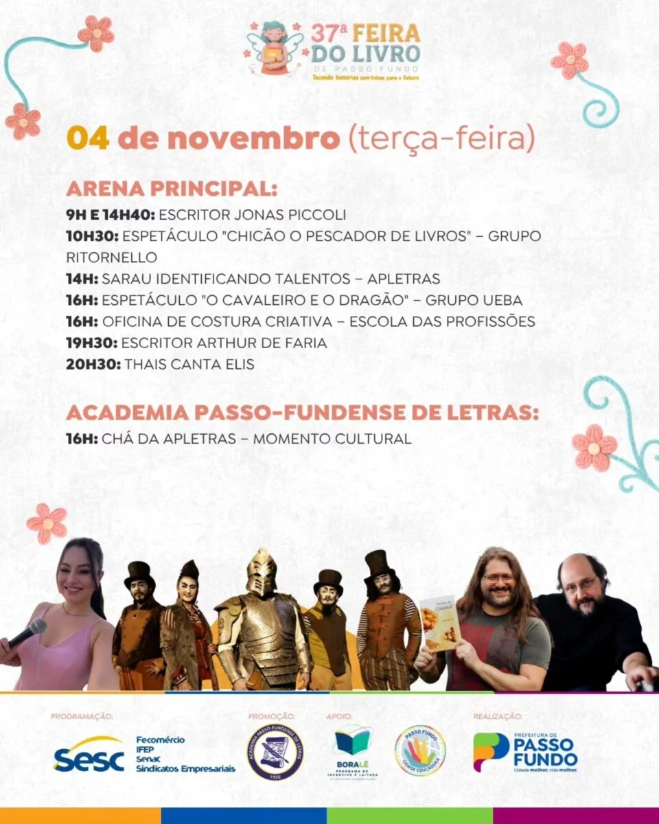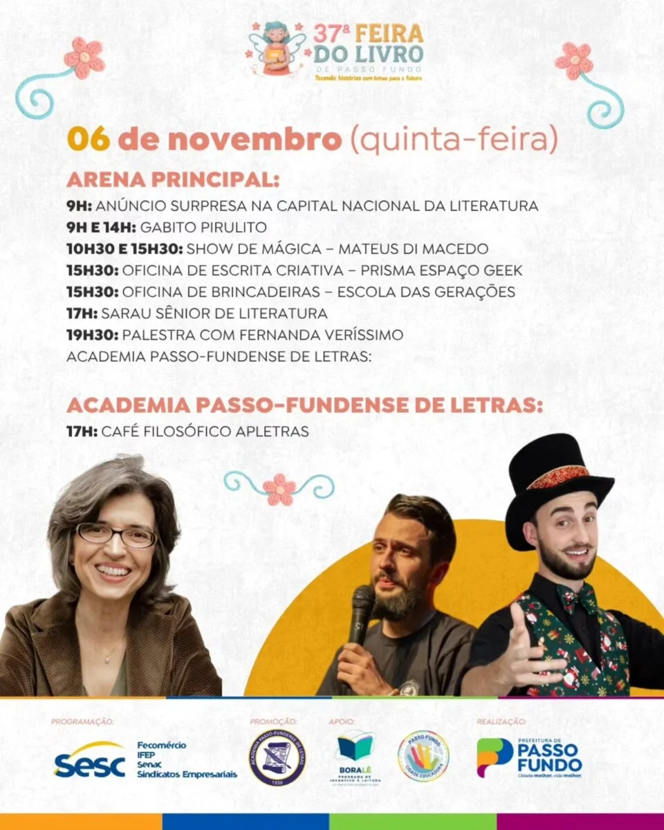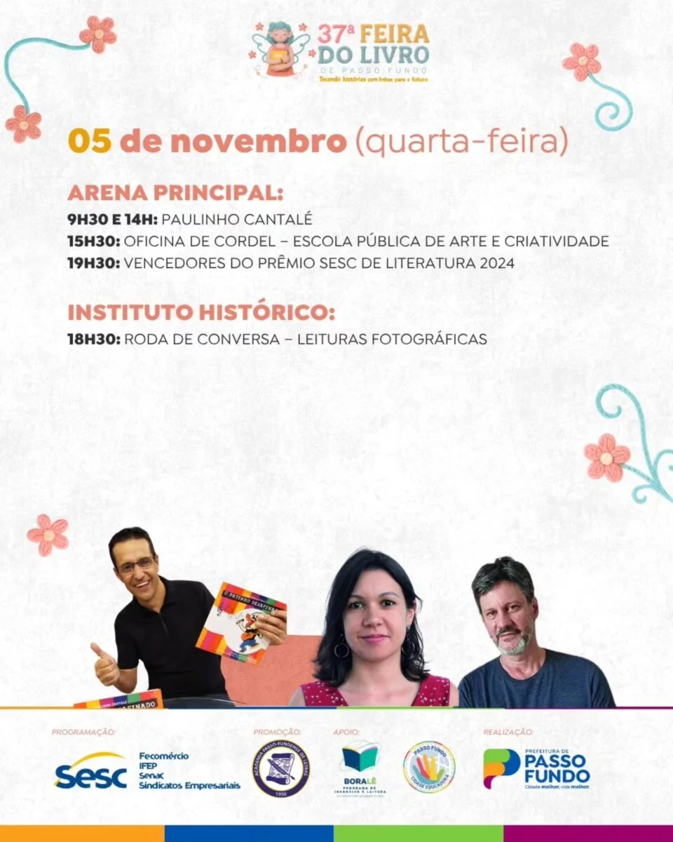 Foi lançada na manhã desta sexta-feira, 10 de outubro, a 37ª Feira do Livro de Passo Fundo. Com o tema “Tecendo histórias com linhas para o futuro”, a Feira do Livro de 2025 propõe um olhar sobre a leitura como instrumento de transformação e como elo entre gerações. A proposta destaca o papel de leitores, escritores e educadores na construção de uma sociedade mais criativa, crítica e conectada com o conhecimento.