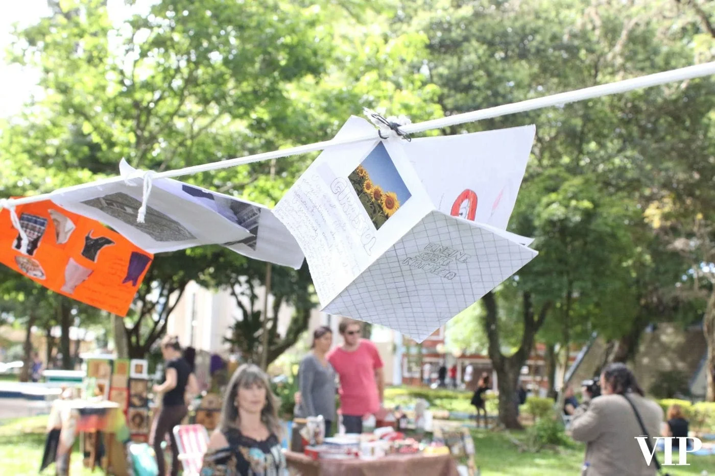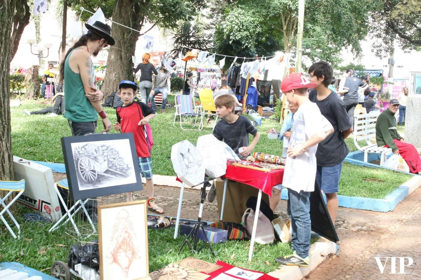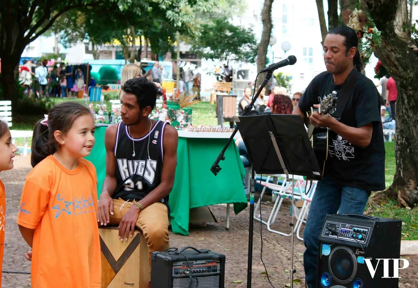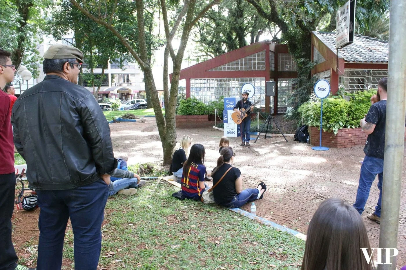 Todos os cantos da Praça Albino Hillebrand foram tomados pela arte neste sábado, 19 de novembro, na 3ª edição do Sábado Cultural. Desde as 15h estavam lá expostos para quem quisesse ver fotografias, artesanato, ilustrações, antiguidades… e para quem quisesse ouvir havia músicas para agradar todos os gostos: Douglas Kalahari, as crianças do Coral do Yacamim, Charles Busker, que cantou a convite do Sesc, Curti Samba, Rock em 2 e o Grupo de danças tradicionais da Comunidade Váycupry.