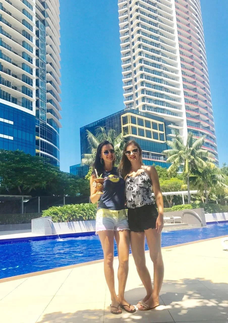 As jovens Yésli Paludo Paludo e Bruna de Britto fizeram um intercâmbio de um mês, na cidade de Gold Coast – Austrália, pela Escola – Inforum Education.