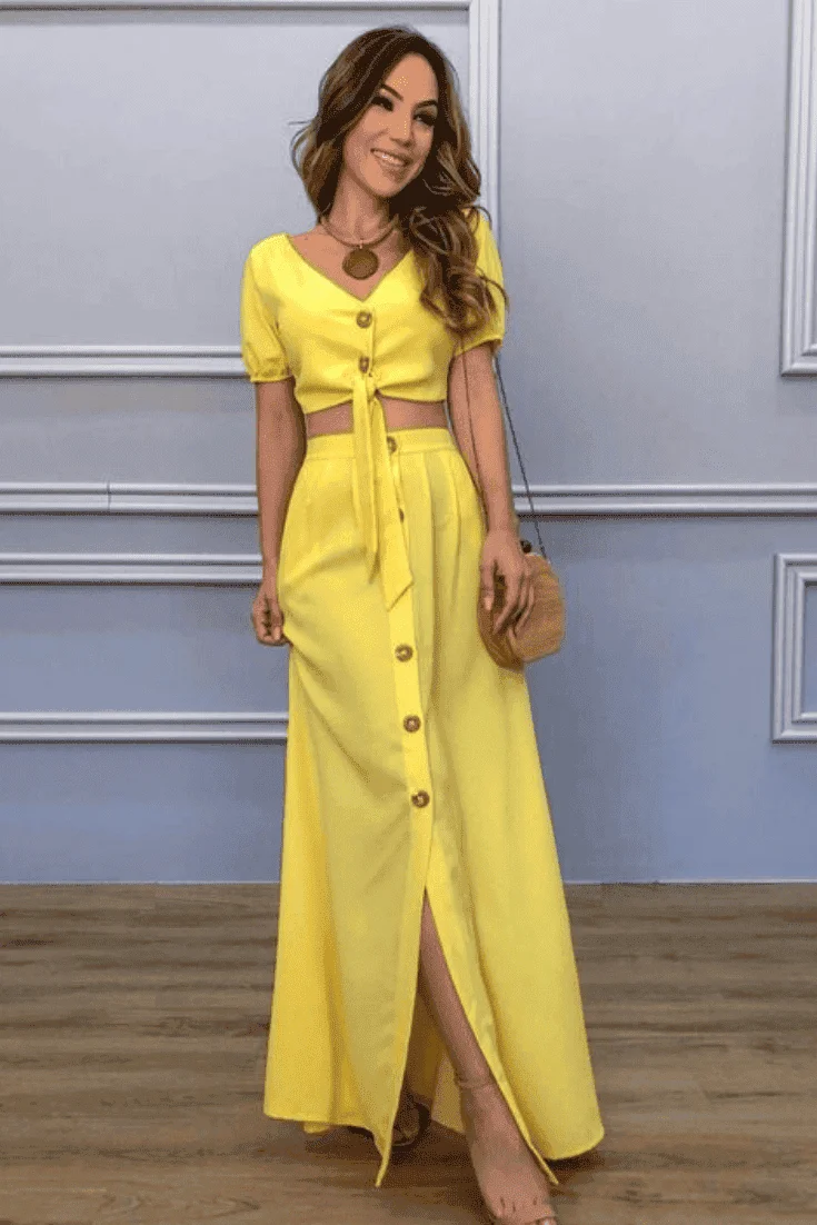 Amarelo: O amarelo é uma cor vibrante, simbolizando muita alegria de viver, e claro, a cor combina perfeitamente com a energia do verão. É uma cor que desperta, que expressa leveza, descontração e otimismo. Simboliza também a criatividade, jovialidade e alegria. Atrai pessoas alegres, rejuvenesce e expressa charme. Perfeito para a virada do ano!