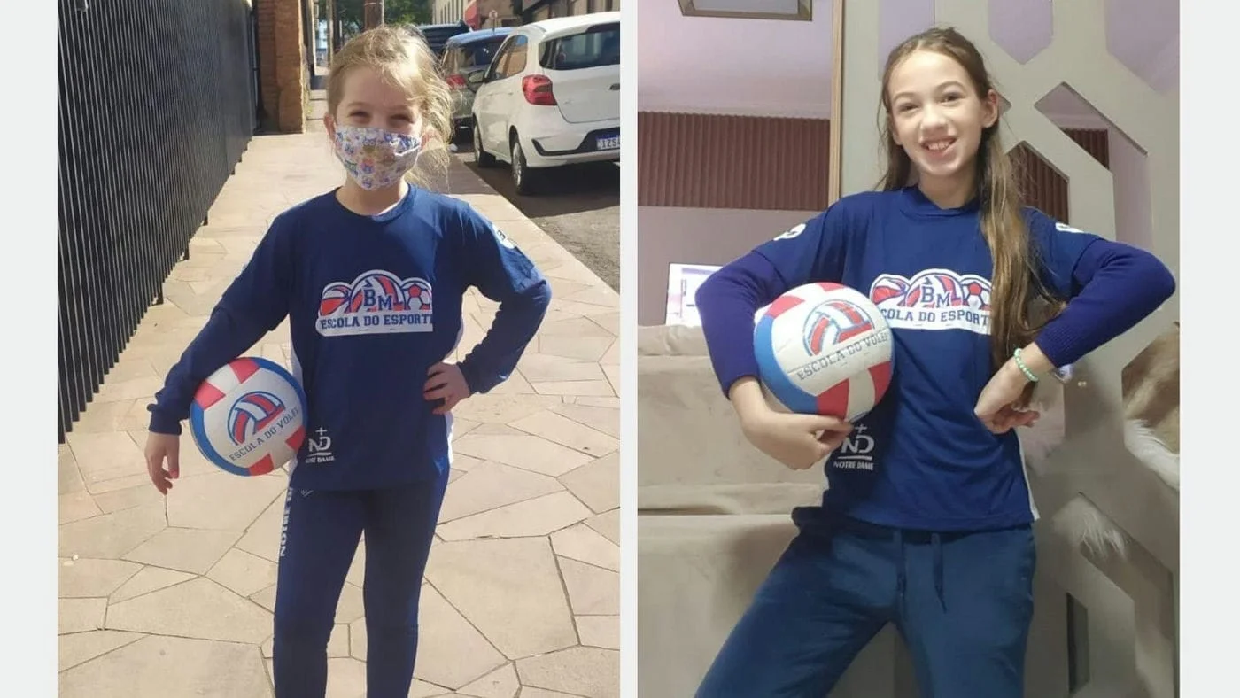 As aulas de vôlei fazem parte das atividades extracurriculares das Marias no Colégio Notre Dame, oferecidas em parceria com a BM Escola do Esporte.
