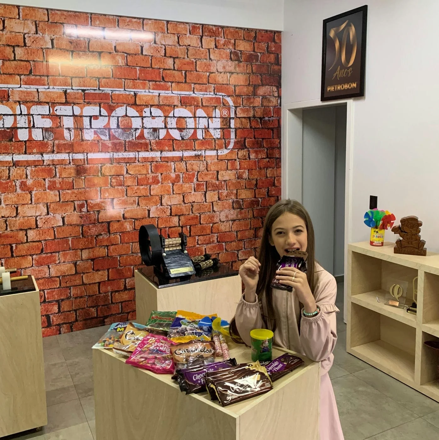 A Pietrobon é uma empresa que tem mais de 50 anos e cerca de 500 funcionários. Lá são produzidas mensalmente mais de 600 toneladas de balas e chocolates. A visita foi guiada pelo sócio-proprietário da Pietrobon, Anacleto Pietrobon, e pela engenheira de alimentos e responsável técnica, Diana Olivo.