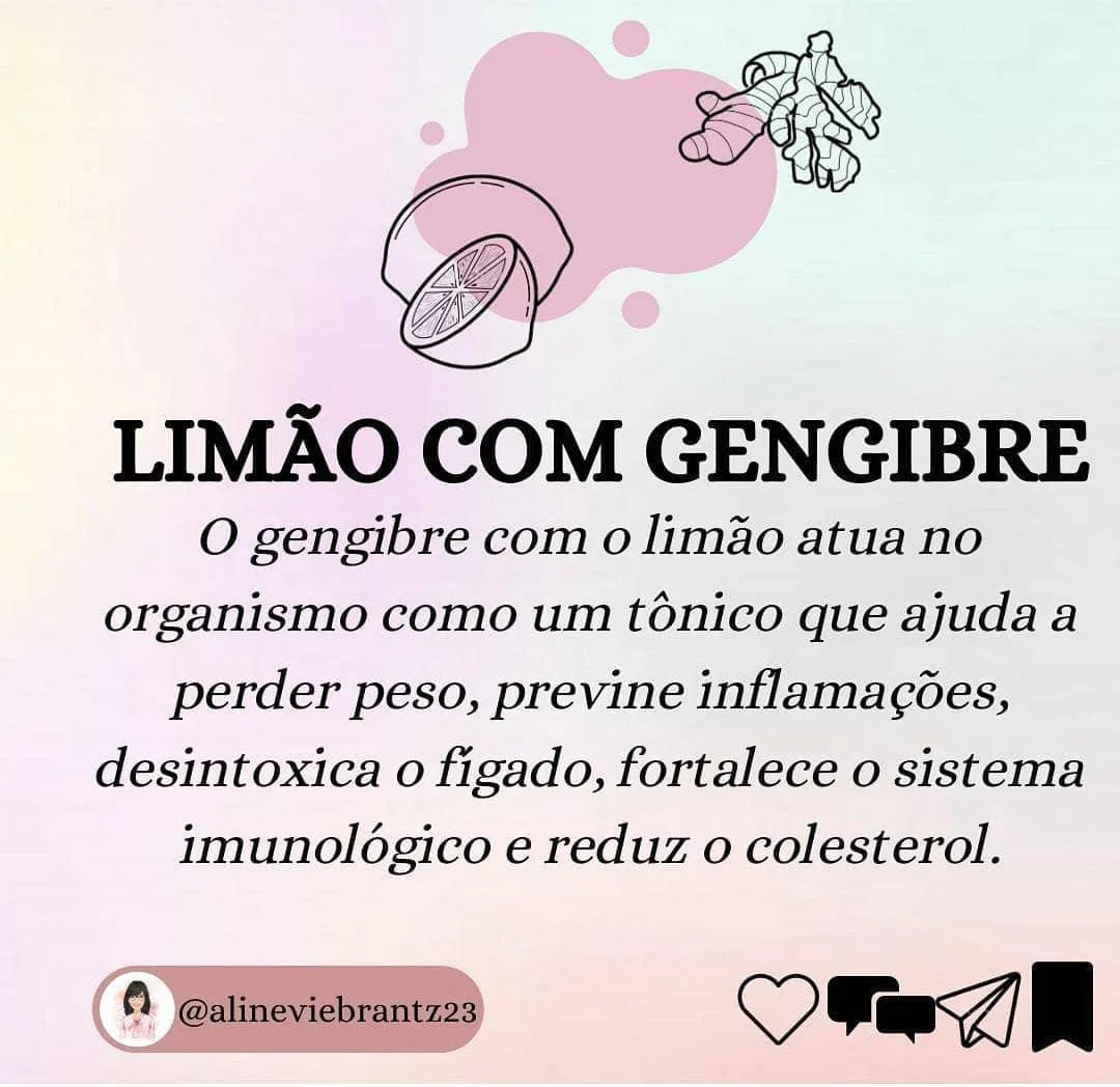 O gengibre com o limão atua no organismo como um tônico que ajuda a perder peso, previne inflamações, desintoxica o fígado, fortalece o sistema imunológico e reduz o colesterol!