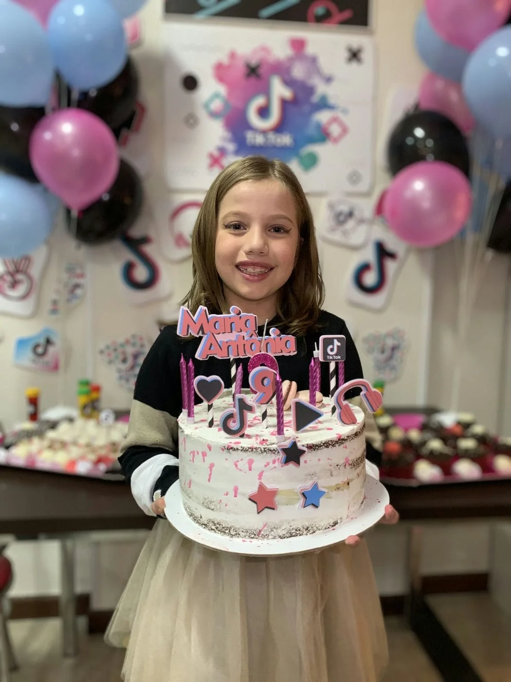 No dia seguinte, sábado (11), comemorou com as amigas. O tema da festa foi “Tik Tok”, uma das redes sociais preferidas da Maria Antônia. Teve bolo, doces e salgados, além de muitas brincadeiras e diversão.