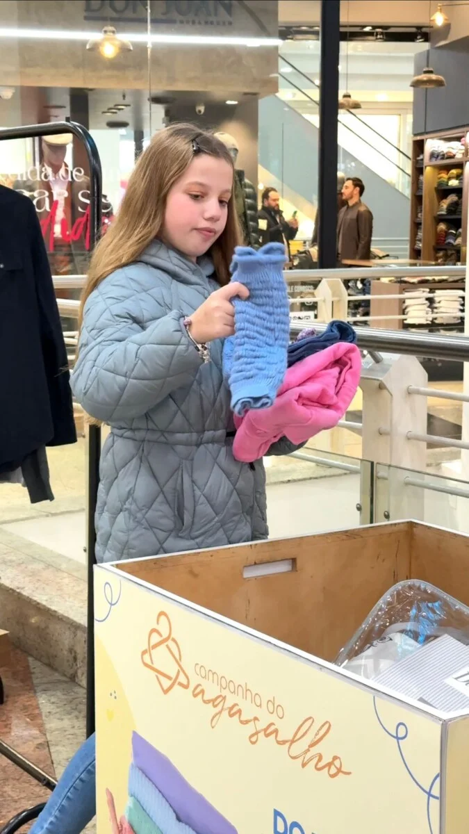 No vídeo, gravado nos corredores do shopping, a influenciadora destaca os pontos de coleta instalados no térreo (próximo à Comercial Zaffari) e no segundo andar (em frente à loja Gang), reforçando a importância de doar com responsabilidade: “Se não estiver em bom estado, nem pense em doar. Quem recebe também merece cuidado e dignidade”, reforça.