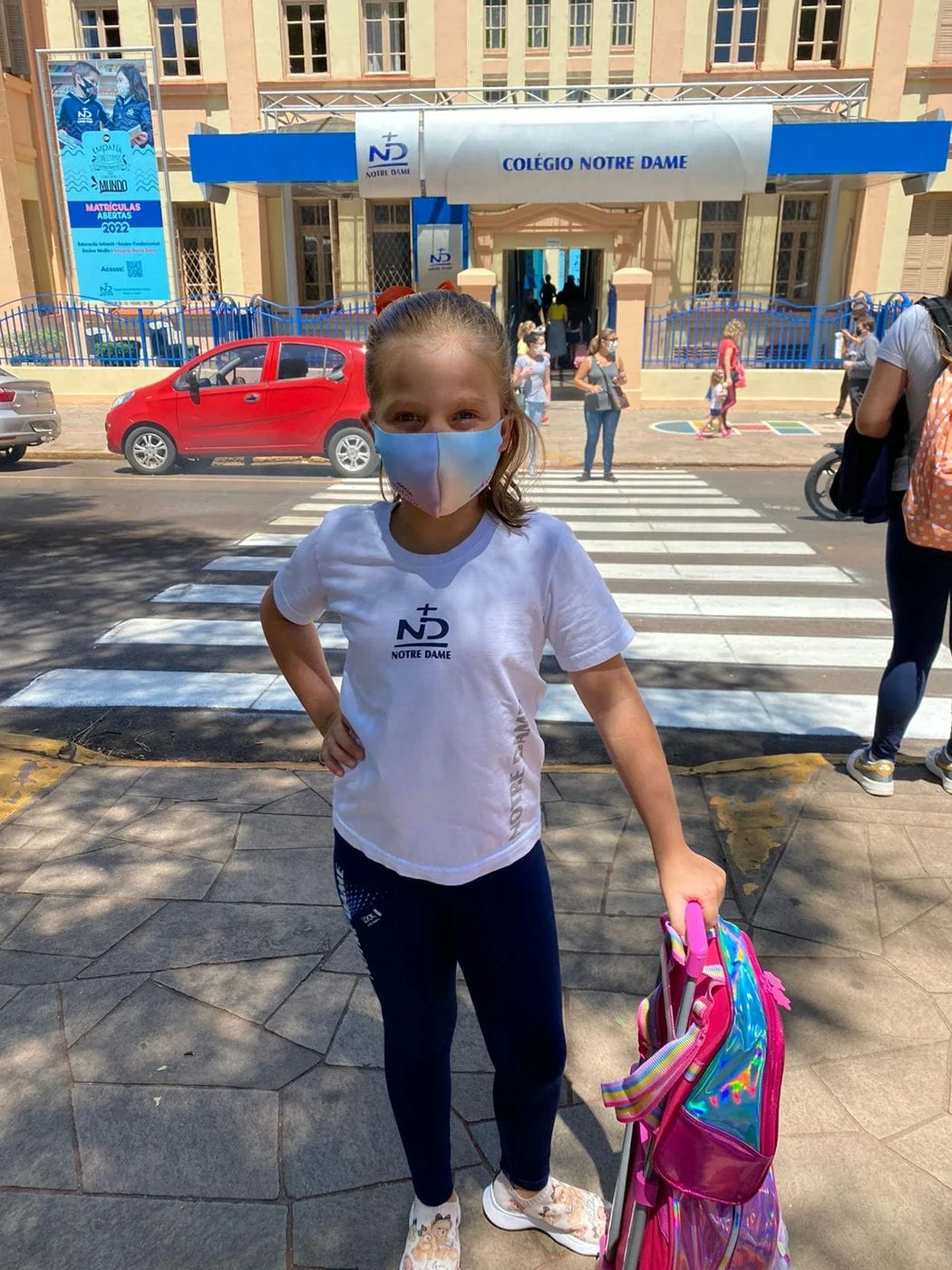 A Maria Gabi, que frequenta as aulas pela manhã, começou o dia reunida no pátio da instituição. Além de celebrar a amizade, ela e os outros alunos foram calorosamente acolhidos pela equipe do colégio Notre Dame. Já em sala de aula, a turma participou de uma dinâmica de apresentação que consistia em falar sobre si por dez segundos. Além disso, elaboraram coletivamente um cartaz para representar ao grupo.