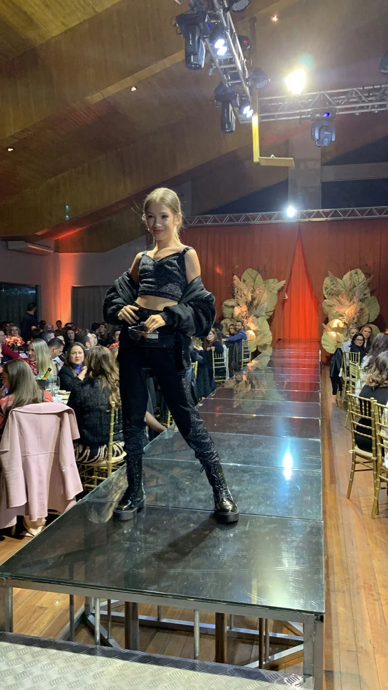 Na passarela, as meninas utilizaram looks próprios de marcas parceiras, como Mad Moda Fashion, Tribo e Farol, combinados com óculos das Óticas Paulo. “Ficamos muito felizes com o convite, porque nós amamos muito o universo da moda e das passarelas”, comentou Maria Gabi.