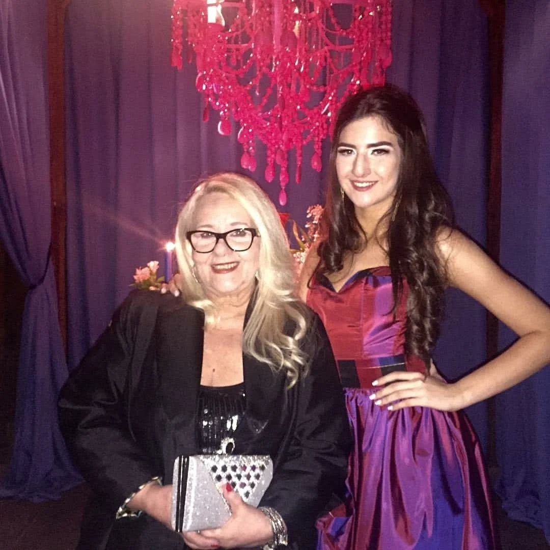 Maria Eugênia com os pais Ciomara e Caio Benincá e a aniversariante Amanda na balada de seu aniversário na Bee Hive