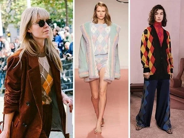 Muito comum nas estampas de sweaters em lãs, é um tipo de xadrez em losangos com transpassados por linhas em tons mais claros