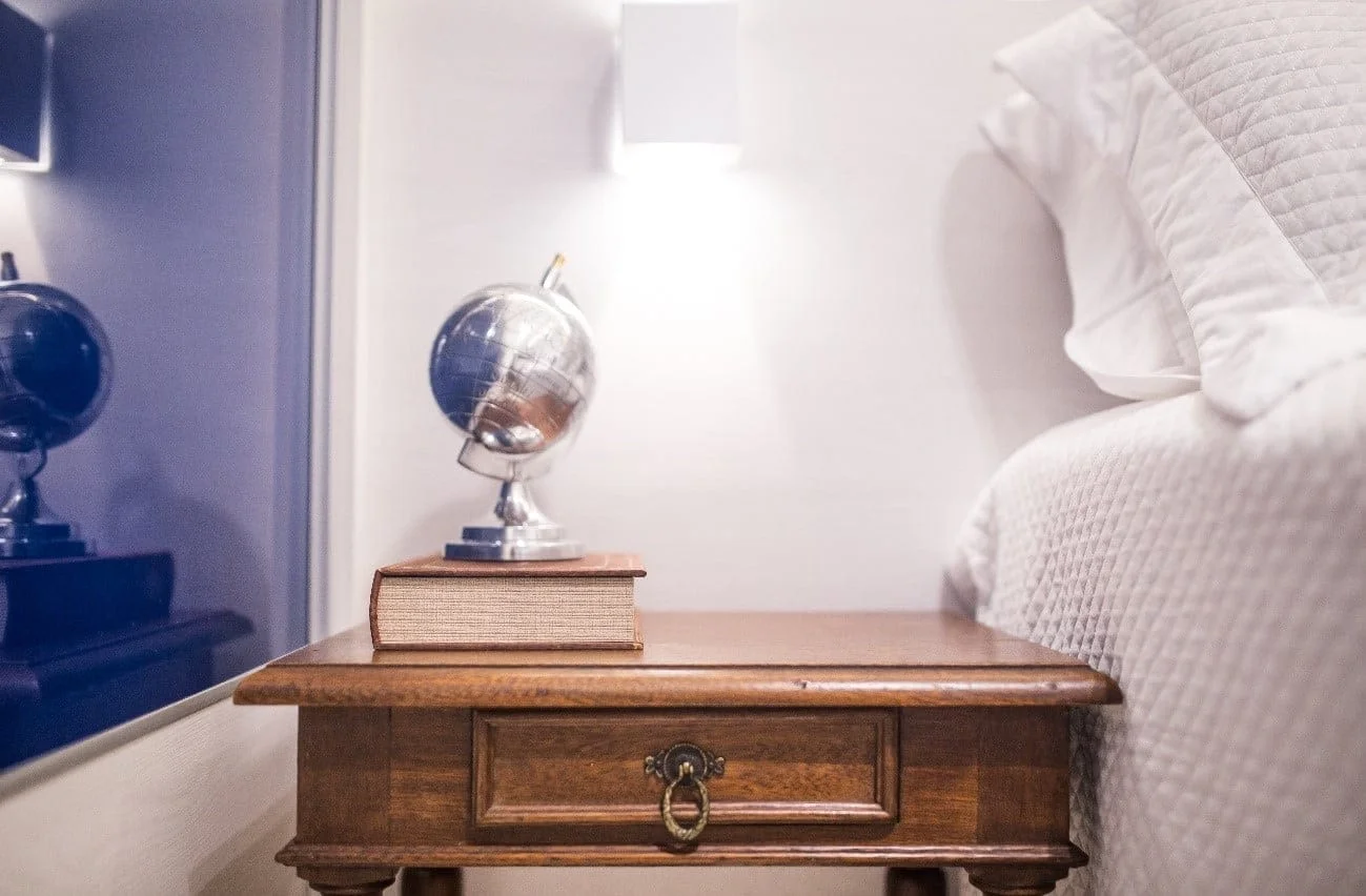 Para finalizar um local estratégico para a sua smart tv de 50 polegadas para que no conforto da sua cama, possa assistir seus filmes favoritos. Um detalhe, a mesa de cabeceira foi restaurada, peça que está na família a mais de 50 anos.