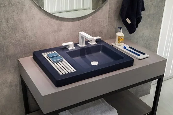 A DECA surpreendeu com essas cubas coloridas E esse misturador na cor branca com a cuba azul um luxo!