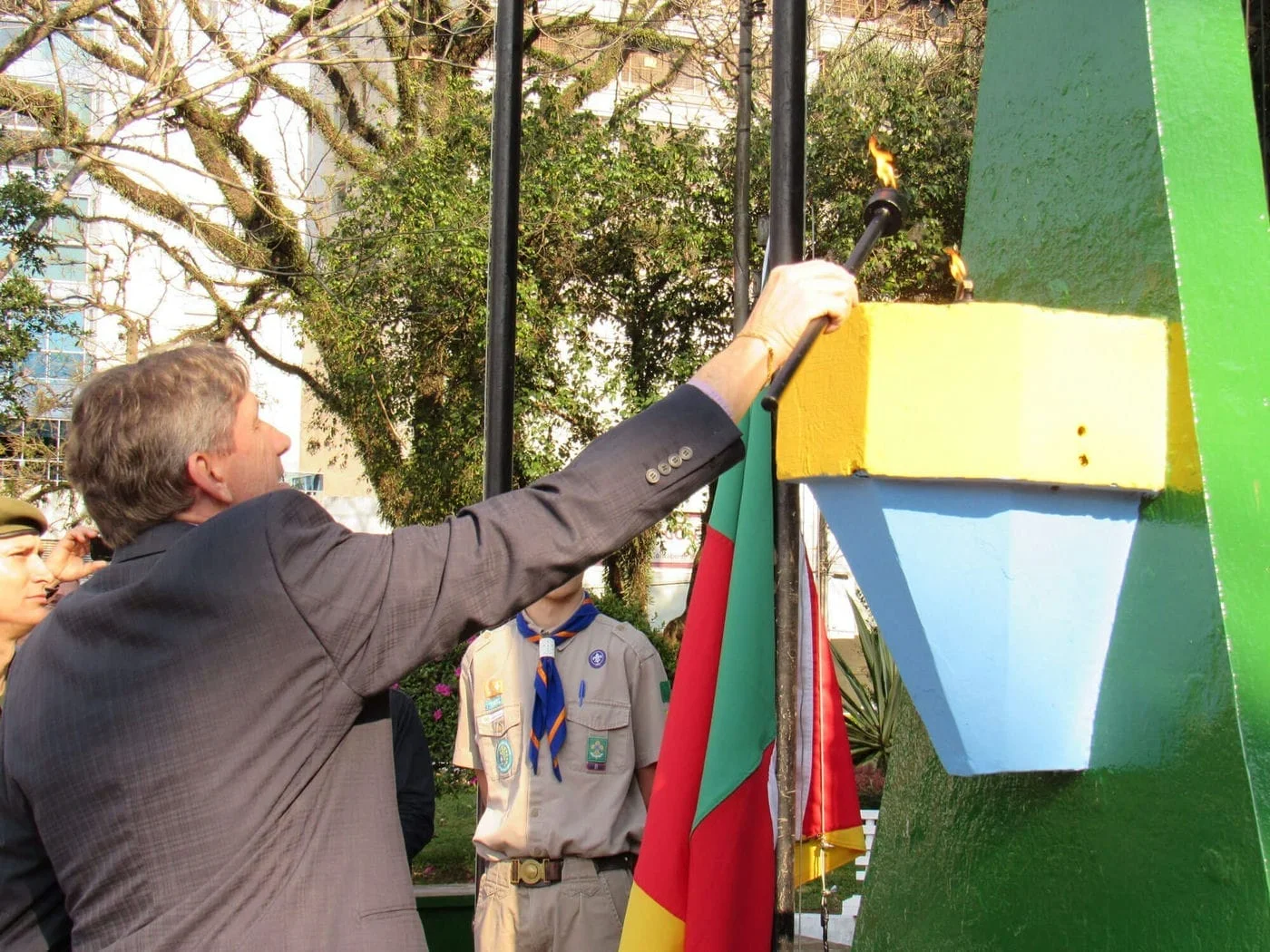 Na ocasião o grupo de escoteiros Levino Junges e Cônego João Batista Sorg guiaram a centelha da chama da Pátria da Paróquia Nosso Senhor Bom Jesus até a praça, onde foram recebidos pelo prefeito Milton Schmitz e as demais autoridades presentes.