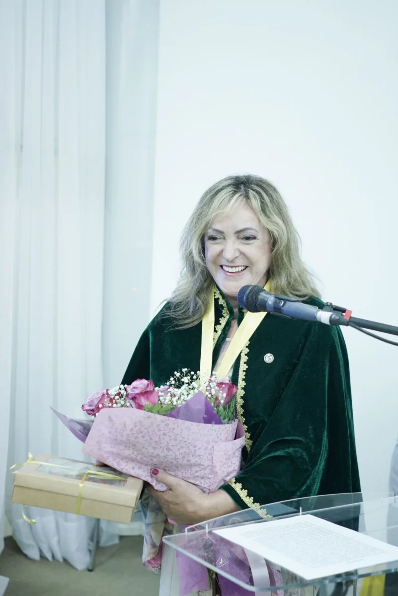 Marilise Brockstedt Lech, atual segunda-tesoureira e ex-presidente da APLetras, agradeceu o reconhecimento de seu trabalho