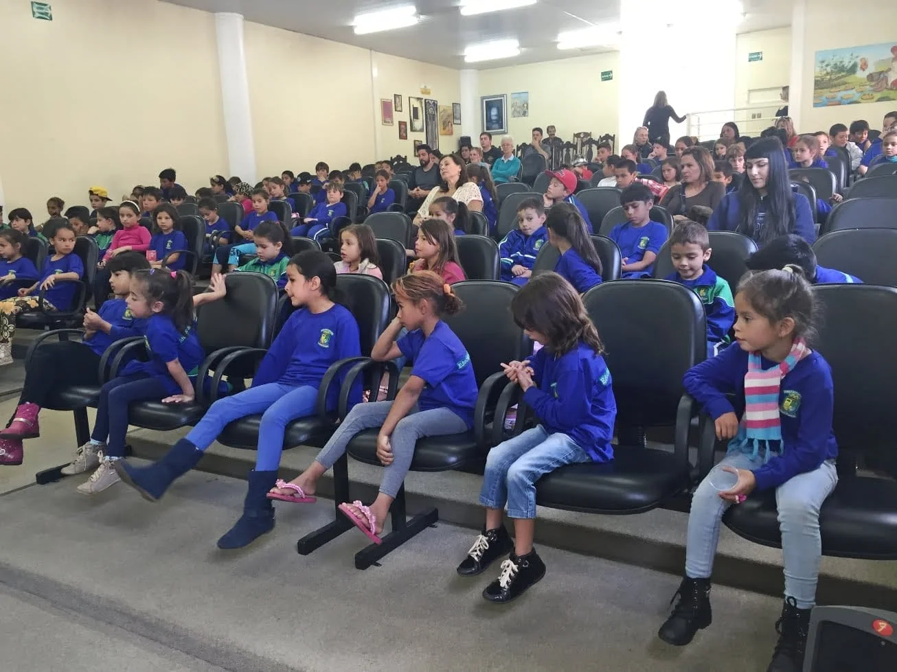 Nessa terça-feira (3), os estudantes da Escola Municipal de Ensino Fundamental São Luiz Gonzaga participaram de uma conversa com os autores Dilse Piccin Corteze e Raniel Henrique de Souza. Dilse, que também é presidente da APL, apresentou o livro “História da Imigração: uma aventura da Itália ao Rio Grande do Sul”, enquanto Raniel falou sobre o livro “Vovó Virou Criança”.