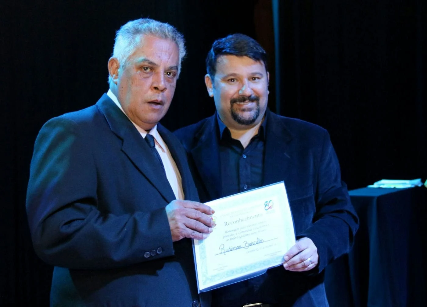 O servidor Rudimar Barcellos, foi homenageado em nome de todos os servidores que já passaram pela Câmara de Carazinho. Outro reconhecimento feito pelo Legislativo durante o evento foi à imprensa local que atua na divulgação das ações da Câmara de Vereadores.
