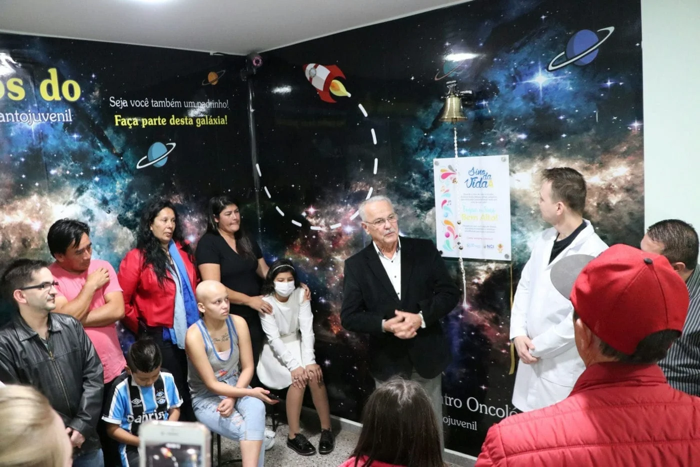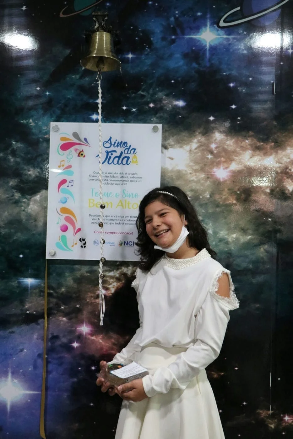 O presidente do Hospital São Vicente, José Miguel Rodrigues da Silva lembrou o significado do sino na história e como o som dele marca a vitória e conquista de um objetivo. “Quando ouvi tocar o sino me veio à mente, o tempo em que lá no interior ouvíamos tocar o sino e íamos para a paróquia se reunir. As famílias conversavam, confraternizavam e agradeciam a Deus pela comunidade. Antigamente também, o sino tocava nas cidades anunciando uma conquista, uma vitória e chamava todos para celebrar juntos o momento”, relembra José Miguel, desejando ainda que o sino toque muitas vezes. “Quando as crianças tocam o sino aqui, estão chamando todos, equipe, família, profissionais para comemorarem com eles esta importante etapa da vida. Quero parabenizar também a equipe de profissionais que acolhem, cuidam com carinho e lutam ao lado das famílias contra essa doença. Agradecer pelo amor dedicado em um momento de tanta dificuldade para essas famílias, com certeza, essas crianças vão lembrar desse momento, desse amor e quando encontrarem alguém em um momento difícil, também vão ajudar. Que este sino toque muitas vezes anunciando vitórias”.