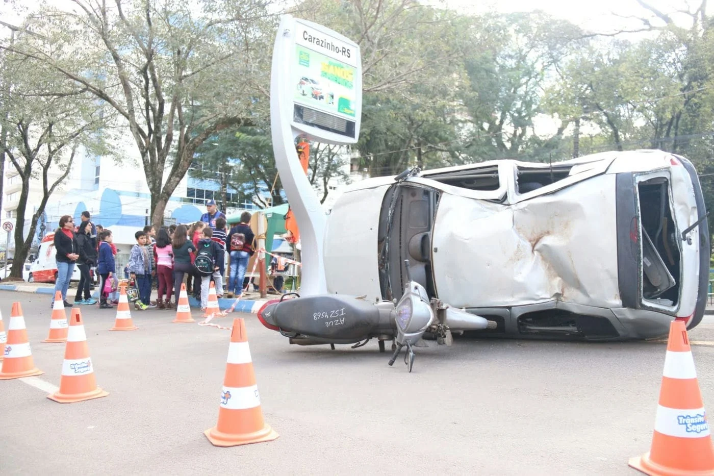 O coordenador do Samu Carazinho, Cleverson Metzdorf, pedia às crianças qual era o número que elas deveriam ligar em caso de acidente. Elas se olhavam e não sabiam responder direito. A professora soprou e alguns disseram “192!”. Cleverson disse que não tinha ouvido muito bem, então todas gritaram “192!”. Assim, de forma lúdica para as crianças e bem explicada para os mais velhos, diversos profissionais envolvidos com o trânsito participaram do chamado “Dia D” do trânsito em Carazinho. A Atividade alusiva à campanha Maio Amarelo, que acontece a nível mundial, teve a sua segunda edição realizada nesta quinta-feira, 12 de maio em Carazinho.