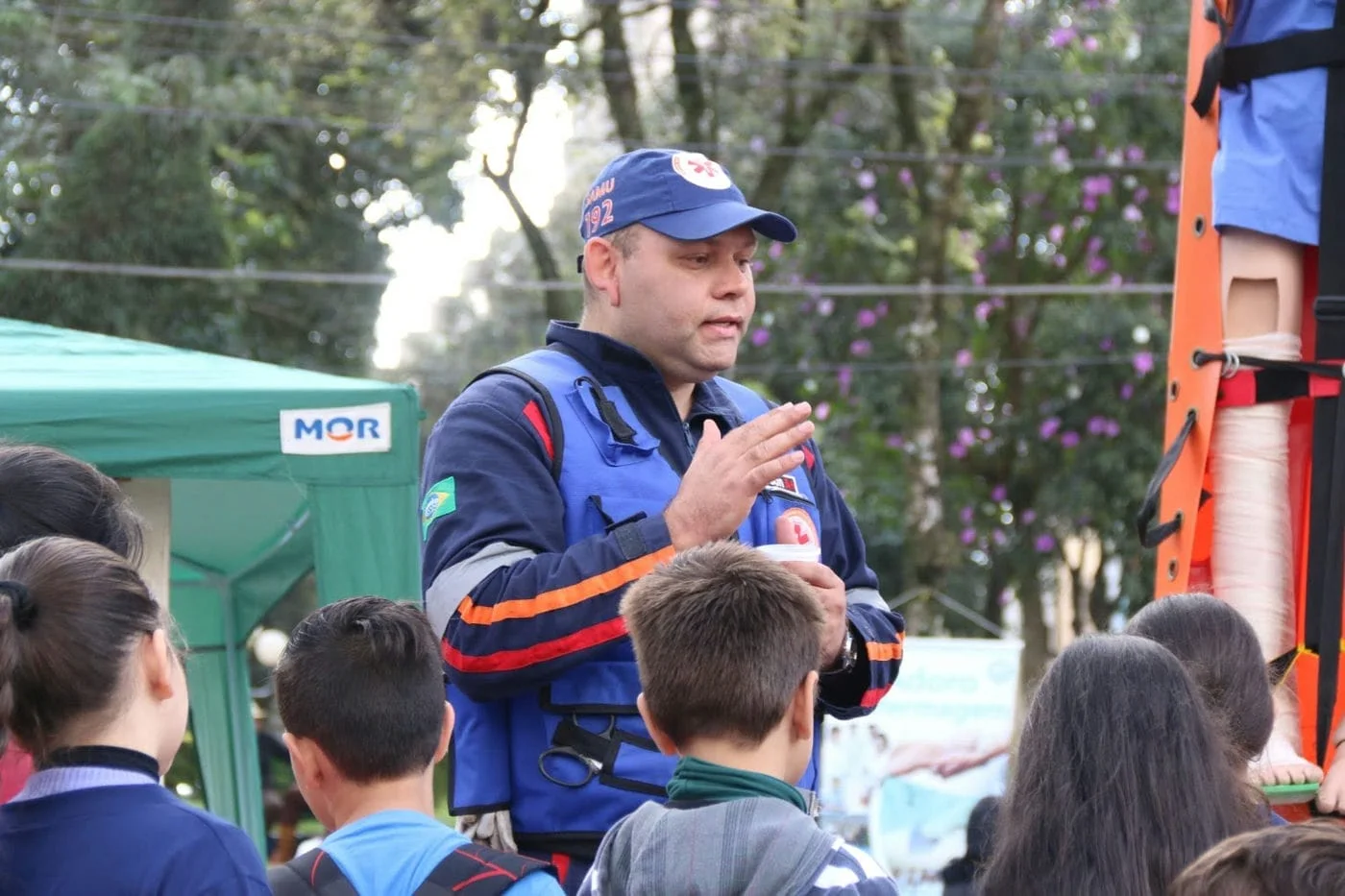 Voltando para a explicação do Cleverson, do Samu, às crianças, ele ainda tocou em outro ponto: o dos trotes! Segundo o Coordenador, cerca de 10% das ligações diárias na Central do Samu no Estado são trotes, por mais que os atendentes sejam preparados para identificar tais ligações mal intencionadas.