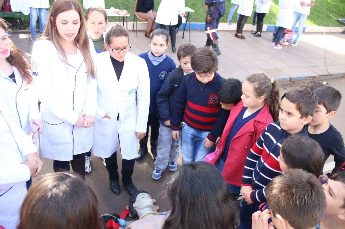 Estiveram presentes todos os CFC’s do município, auxiliando na escolinha de trânsito e na carreta escola, disponibilizada pela TW Transportes; equipes do Sest Senat, Corpo de Bombeiros, Samu, SAE – Serviço de Assistência Básica de Saúde e alunos do curso de enfermagem da Ulbra, que durante todo o dia deram orientações sobre trânsito e primeiros socorros. Cerca de 40 alunos do curso de enfermagem estavam presentes e faziam a verificação da pressão e testes de glicose pela parte da manhã. “Fizemos oficinas de parada cardiorrespiratória, engasgamento e sufocamento com os alunos das escolas que vieram participar”, contou a coordenadora do curso Anelise Almeida. À tarde o SAE disponibilizou os testes rápidos de HIV, sífilis e hepatite.