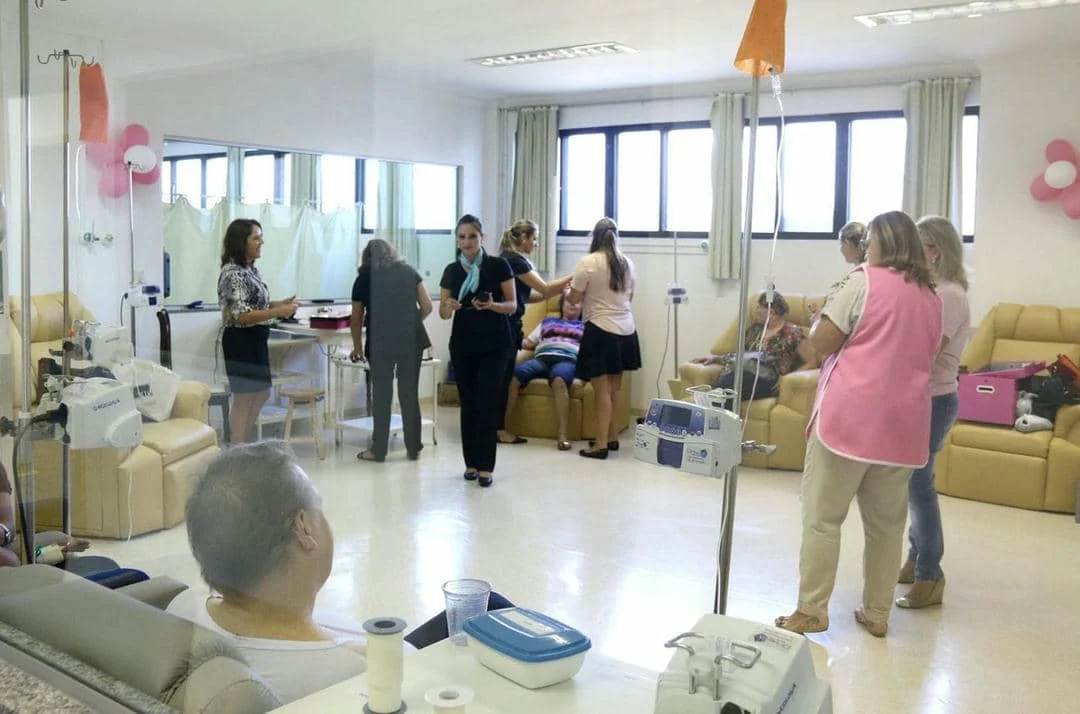 A sala onde os pacientes da Oncologia do Hospital de Caridade de Carazinho costumam passar o tempo recebendo a medicação, deu lugar a uma sala de beleza, cheia de mulheres lindas na tarde desta terça-feira (31).