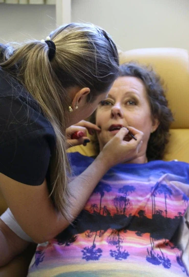 Neste primeiro Dia de Beleza, as maquiagens ficaram a cargo do Boticário. As meninas passaram base, sombras, batons e até cremes hidratantes – tudo o que pudesse realçar a sua beleza. Zaira de Assis, uma das mulheres que participou pela primeira vez da atividade, está em tratamento contra um câncer de mama. “Eu sempre me cuidei, sempre tive muita vaidade, até desfilava no carnaval. Agora é totalmente diferente, além de não poder cuidar do corpo porque não posso fazer dieta, às vezes não consigo nem me arrumar”, conta. Ela descobriu o câncer em Dezembro e poucos dias antes da virada do ano perdeu todo o cabelo. “Logo comecei a usar uma peruca, que ganhei da minha mãe, pra eu poder ter uma vida normal, poder me aceitar”.