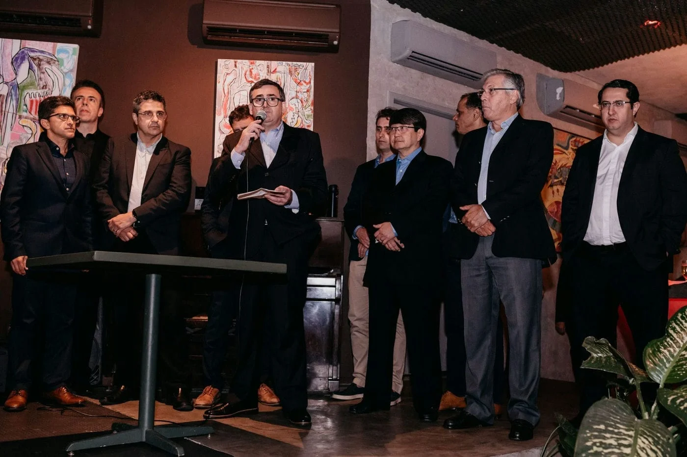 Os ortopedistas, Dr. Vinícius Kuhn, filho do Dr. André, Dr. Paulo Renato Saggin, Dr. Osmar Lopes Jr, Dr. Antonio Severo, Dr. Luiz Henrique Silva e Dr. Paulo Piluski, estiveram na cerimônia para prestigiar a posse do colega.