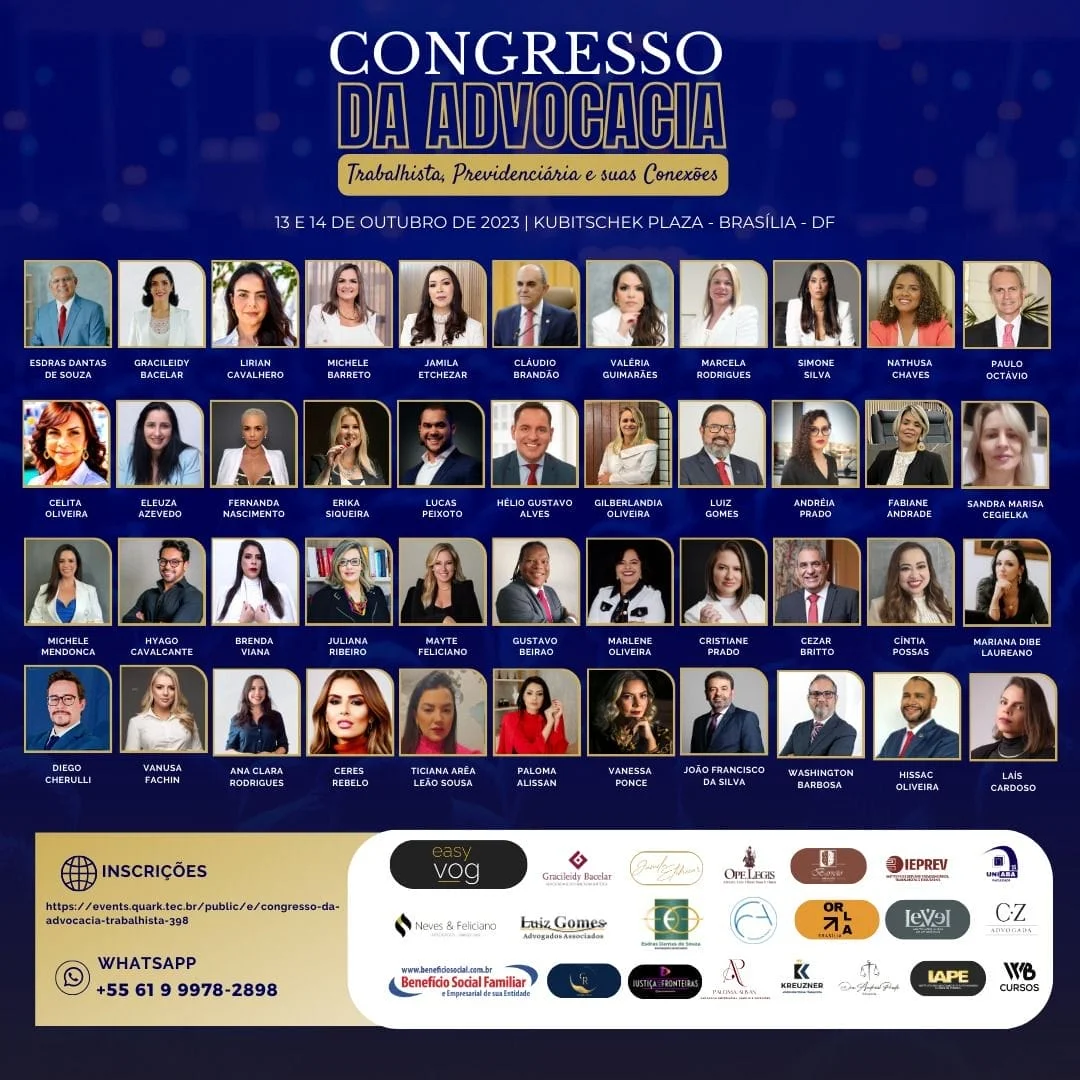 Já fez a sua inscrição no Congresso da Advocacia Trabalhista, Previdenciária e suas Conexões? Brasília está esperando por vocês! Não fique de fora!