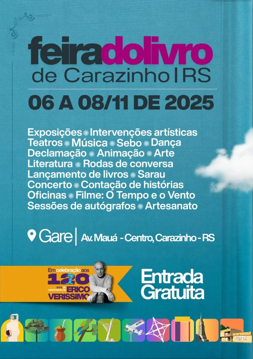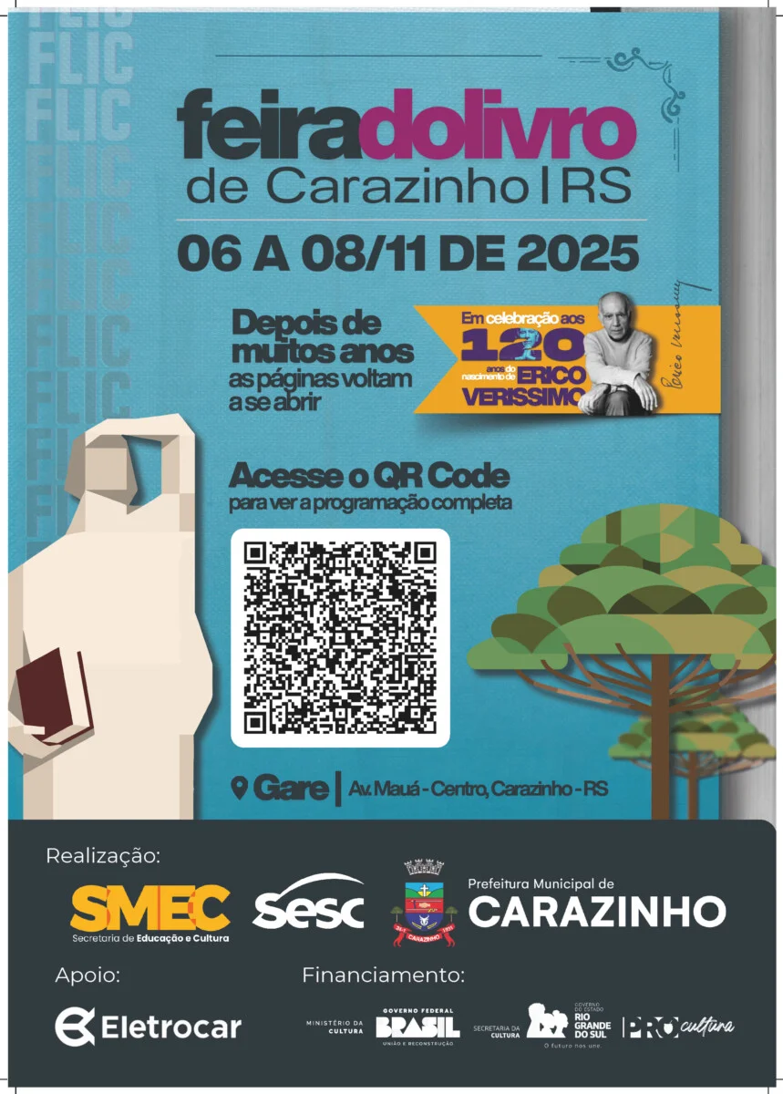 Nesta quinta-feira (6/11), a cidade de Carazinho volta a viver uma celebração em prol da leitura com o início da Feira do Livro. O evento não acontecia na cidade há mais de 20 anos e foi retomado pelo munícipio, tendo realização da Prefeitura e Sesc Carazinho, apoio cultural da Eletrocar e Financiamento da Secretaria da Cultura do RS.