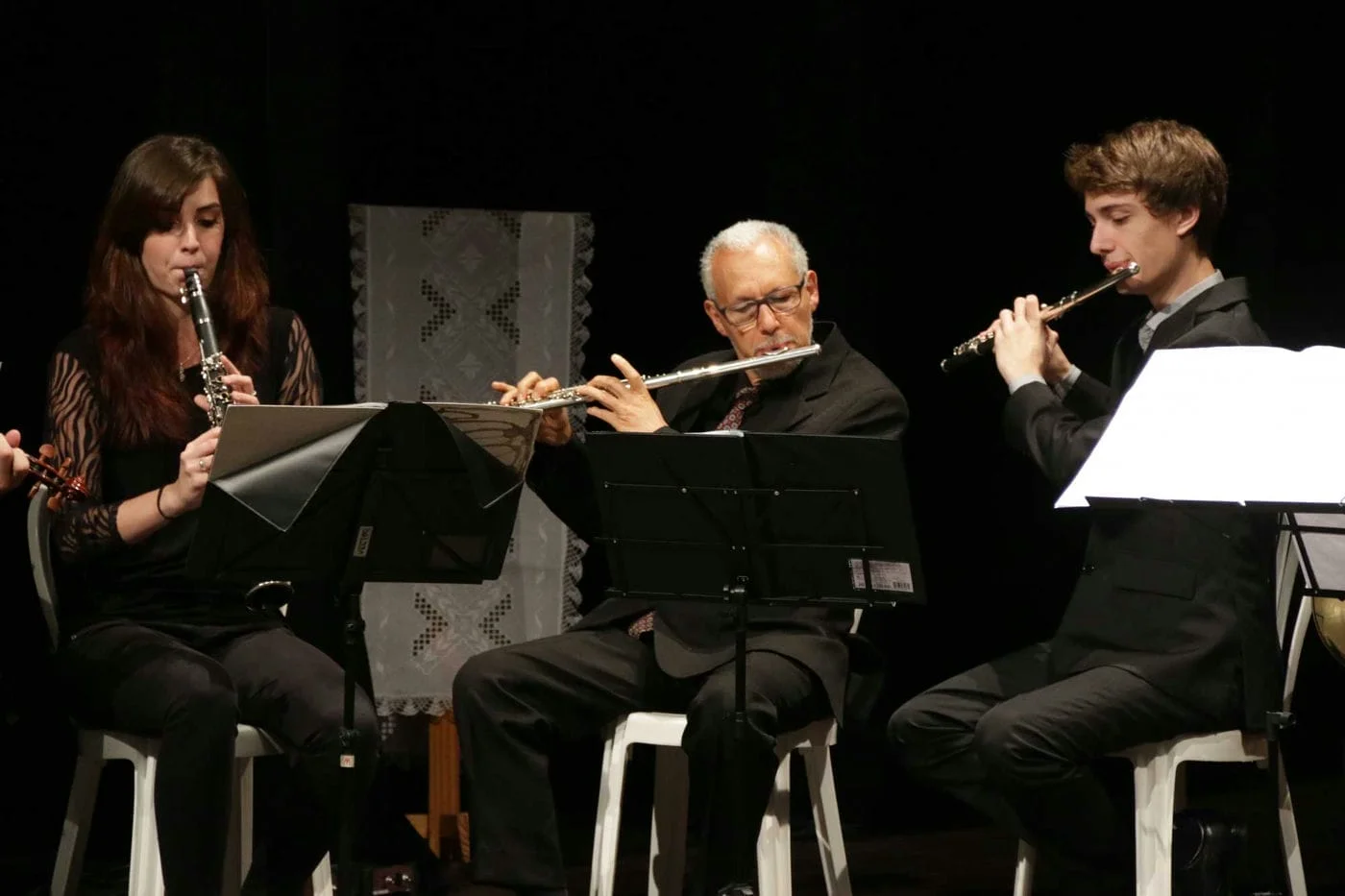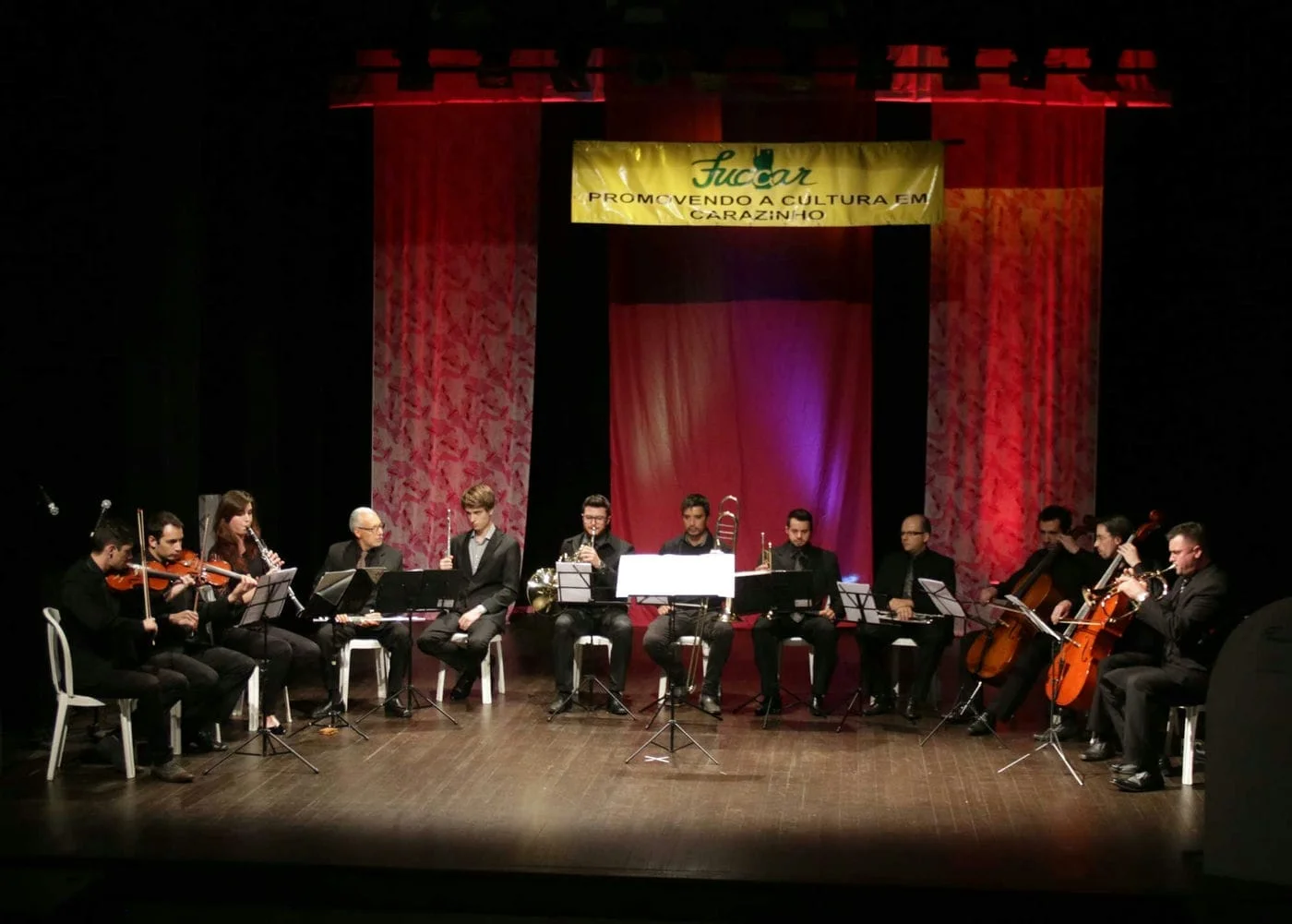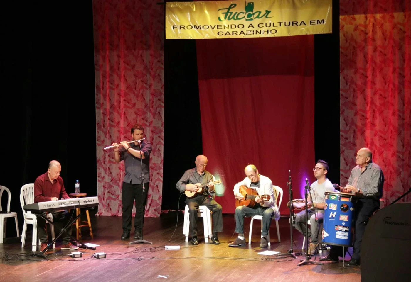 Para comemorar esta bela trajetória, na noite desta sexta-feira, 17 de novembro, a Fuccar organizou uma noite para homenagear algumas pessoas que foram fundamentais em sua trajetória – e comemorar de um de seus jeitos preferidos: com muita música! O teatro do Sesc foi cedido à Fundação para a realização do evento, que foi gratuito e aberto a comunidade. Subiram ao palco, o grupo de sopros e cordas sob a regência de Delmar Horlle; o acordeonista Jeferson Oliveira, acompanhado de amigos e alunos; e o Grupo Cesta Básica.