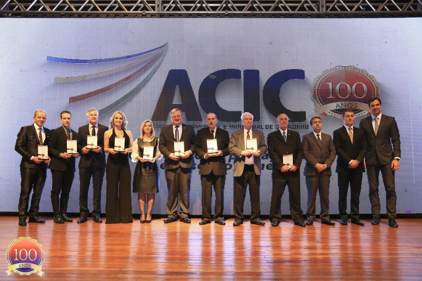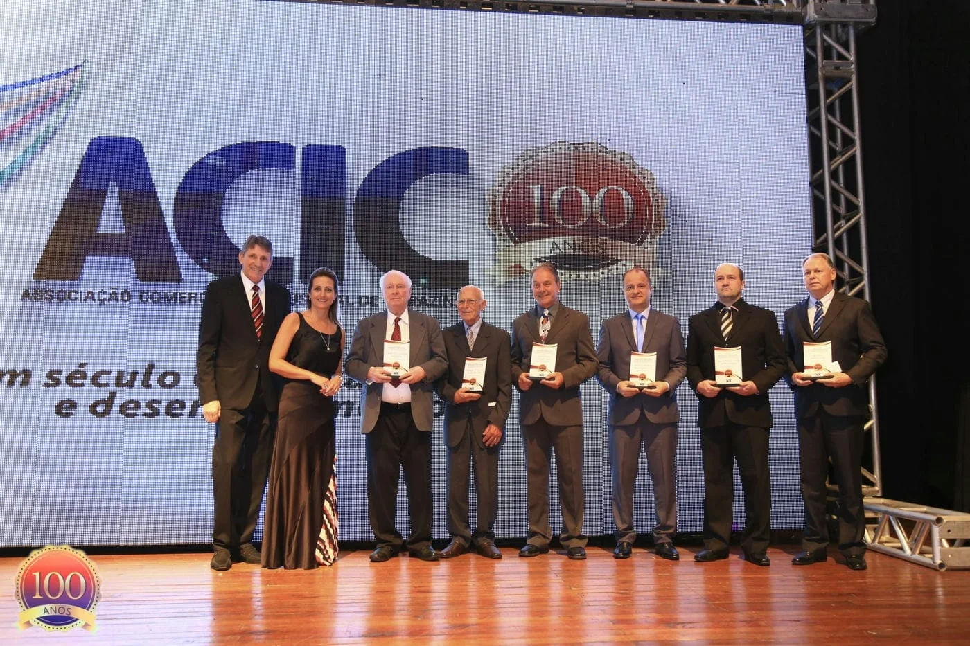 “A Associação Comercial e Industrial de Carazinho inicia hoje o seu segundo século de história!” Foi com esta frase que o presidente da ACIC Jocélio Cunha, iniciou o seu pronunciamento na solenidade de comemoração do centenário da entidade, realizada na última sexta-feira (24), na Bier Site Eventos. Para o presidente, o maior tributo que se pode fazer ao passado é garantir um futuro melhor para as próximas gerações. E em nome deste futuro é que a entidade prestou homenagens não só a quem ajudou a construir a história da ACIC, mas também a quem vem atuando hoje em prol do desenvolvimento de Carazinho e região. Ao todo foram agraciadas personalidades, empresas, instituições e ainda, ex-presidentes da entidade.