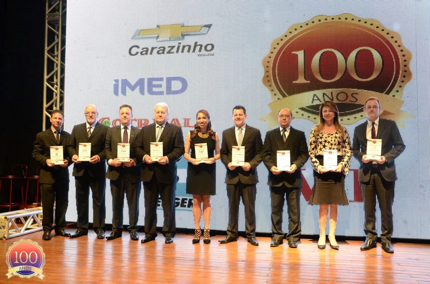 Com o Troféu 100 anos, foram agraciadas as seguintes personalidades: o presidente da Nestlé Brasil, Juan Carlos Marroquin, que foi representado pela head da área de Assuntos Públicos da Nestlé Helga Meuser; o presidente da Federação das Indústrias do estado do Rio Grande do Sul (FIERGS), Gilberto Porcello Petry, que esteve representado pelo vice-presidente da instituição, Jairo Alberto Zandoná; o presidente da Assembleia Legislativa do Rio Grande do Sul, deputado estadual Edegar Pretto, que foi representado pelo deputado estadual Juliano Roso; o ex-ministro da Agricultura e coordenador do Centro de Agronegócios da Fundação Getúlio Vargas, Roberto Rodrigues; a presidente da Federação das Associações Comerciais do estado do Rio Grande do Sul (FEDERASUL), Simone Leite; o governador do Rio Grande do Sul, José Ivo Sartori, que foi representado pelo deputado estadual Vilmar Zanchin; o procurador geral da Justiça do estado do Rio Grande do Sul, Fabiano Dallazen; o deputado federal e atual secretário de Desenvolvimento Econômico, Ciência e Tecnologia do estado do Rio Grande do Sul, Márcio Biolchi; o presidente da OAB Nacional, Dr. Cláudio Pacheco Prates Lamachia, representado pelo advogado Dr. César Souza; o deputado federal e atual ministro do Trabalho, Ronaldo Nogueira e o prefeito de Carazinho, Milton Schmitz.