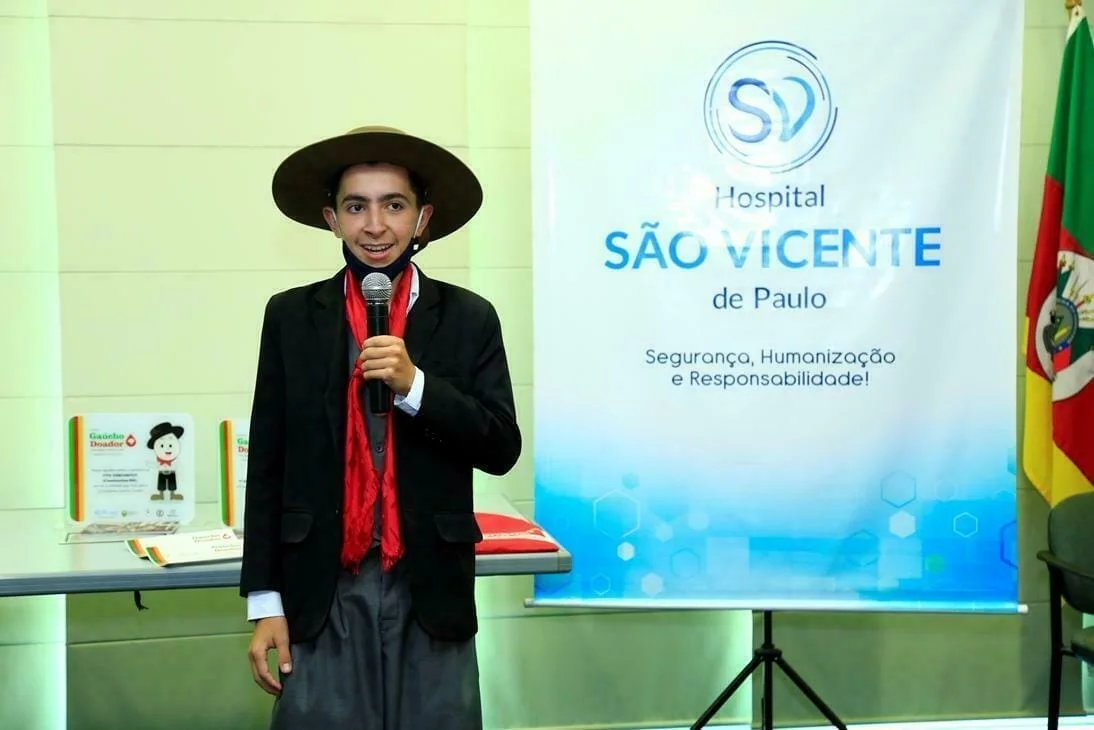 No Dia Nacional do Doador de Sangue, 25 de novembro, o Serviço de Hemoterapia do Hospital São Vicente de Paulo (HSVP), de Passo Fundo, realizou a cerimônia de entrega dos troféus do concurso de poesia que faz parte da campanha “Gaúcho Doador: doe sangue, mostre o teu valor!”, lançada no mês de setembro em parceria com a 7ª Região Tradicionalista, Movimento Tradicionalista Gaúcho (MTG), Academia Passo-Fundense de Letras e projeto de Extensão ComSaúde da Universidade de Passo Fundo (UPF). A Campanha visa aumentar o número de doadores de sangue, além de conscientizar sobre a causa.