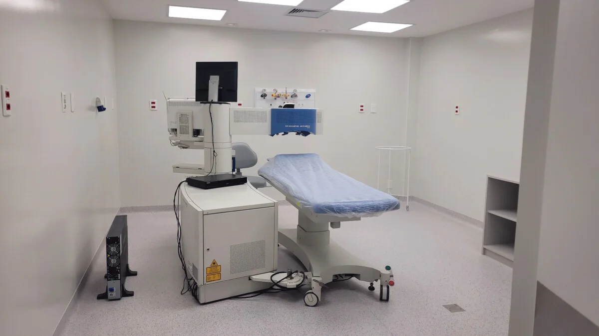 O Centro Cirúrgico do HORGS é concentrado ao longo dos 2º e 3º pavimentos. O Centro de Cirurgia Refrativa fica no segundo andar do empreendimento, com recepção exclusiva, vestiários masculinos e femininos para médicos e pacientes, sala cirúrgica, sala de recuperação, dentre outros espaços operacionais. A Instituição conta com a tecnologia zero touch do Laser Schwind Amaris para a realização dos procedimentos, capaz de corrigir o “grau” do paciente com eficácia e segurança em poucos segundos.