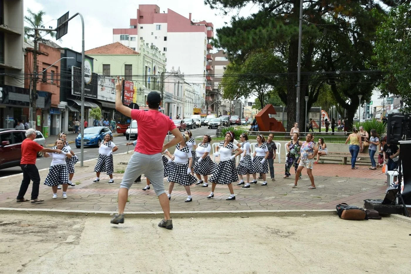 Música, dança e muita diversão. Esse foi o cenário visto por quem passou pela Praça do Teixeirinha, no centro da cidade, na tarde de sexta-feira, 3 de março. Os responsáveis pela ação foram os integrantes do Centro de Referência e Atenção ao Idoso da Universidade de Passo Fundo (Creati/UPF) que se reuniram em uma espécie de aulão para promover as atividades do centro.