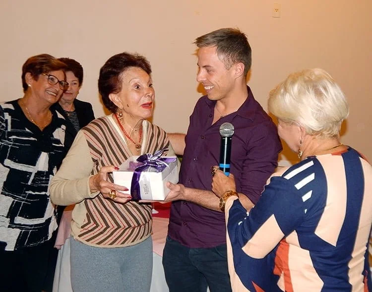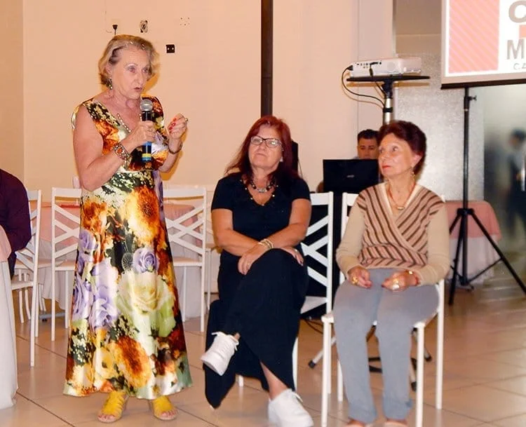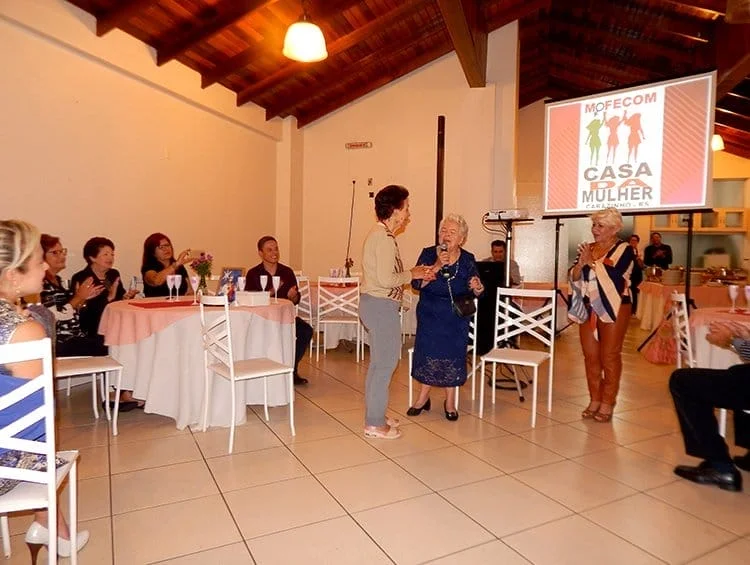 Os tempos mudaram e hoje, felizmente, as mulheres vítimas de violência doméstica podem contar com o apoio da Delegacia da Mulher, das Defensorias Públicas e ter o amparo da Lei Maria da Penha. Como o MOFECOM vinha encontrando muitas dificuldades para manter o seu trabalho, as atuais componentes decidiram encerrar as atividades, comemorando os mais de 30 anos de trabalho em um jantar, realizado na noite desta quinta-feira, 28 de março, nas dependências da Carla Link Eventos. Durante a noite, a trajetória do MOFECOM foi relembrada e os presentes puderam ouvir os relatos de algumas das integrantes do Movimento. Recília recebeu um presente em homenagem a toda a sua dedicação durante os anos. Mas, generosa como sempre foi, quis passar o seu presente adiante e o entregou a Maria de Lurdes Gobbi, uma das voluntárias mais atuantes do MOFECOM.