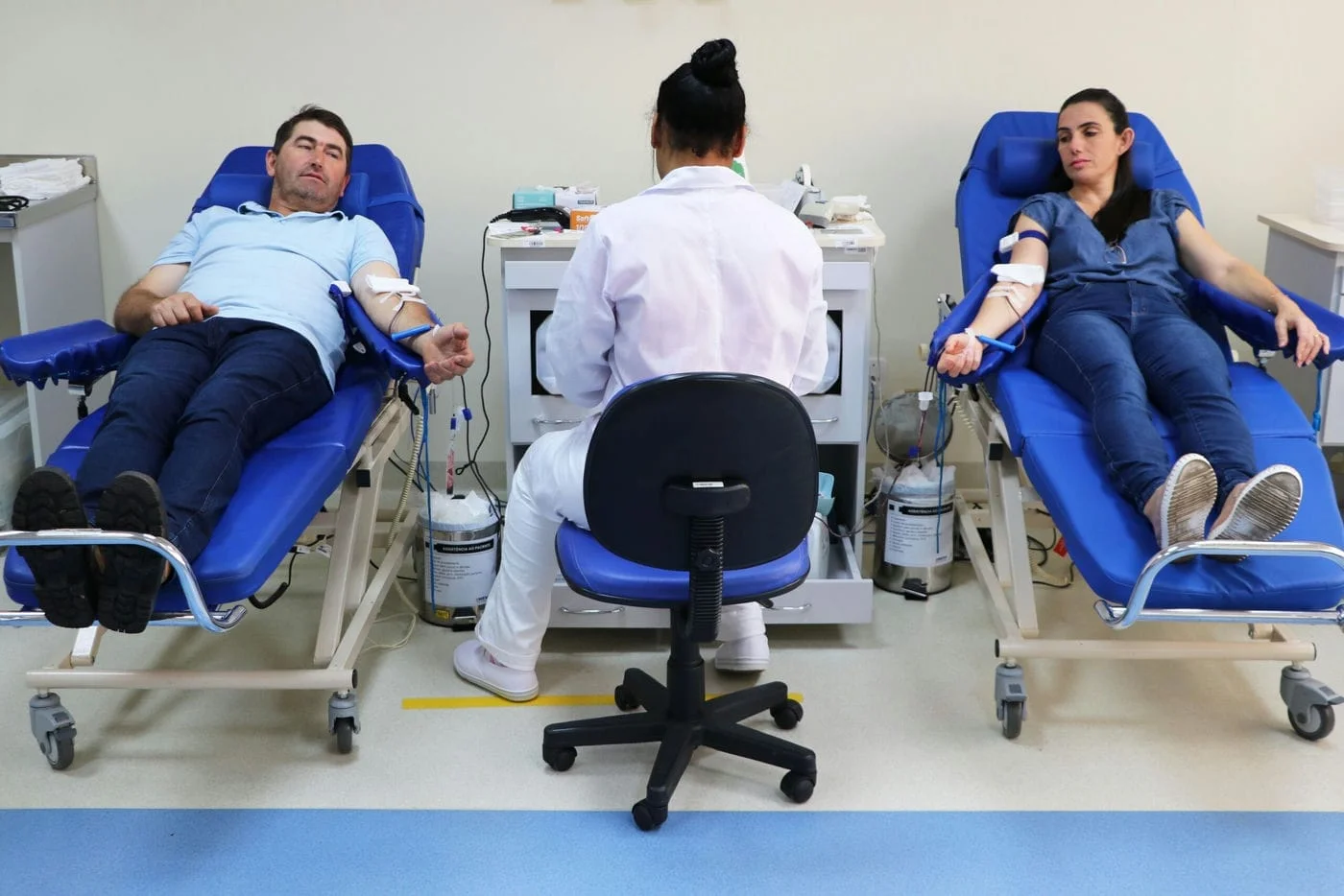 A coleta demora de 5 a 12 minutos com a retirada de cerca de 450 ml de sangue