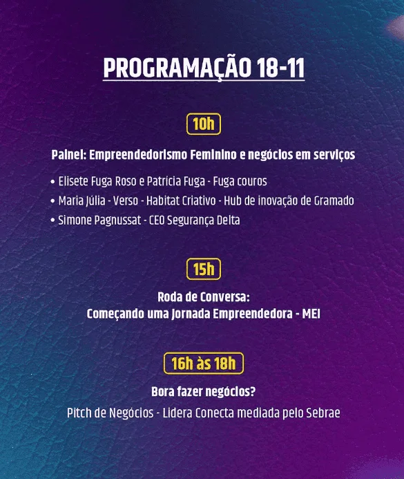 Com um foco especial nos serviços oferecidos pelas mulheres empreendedoras que fazem parte da Lídera – Associação de Mulheres Empreendedoras, esta feira oferecerá um espaço de exposição e interação, conectando empresas locais com o público interessado. Durante os dois dias do evento, os visitantes poderão explorar uma variedade de serviços, tudo de forma gratuita.