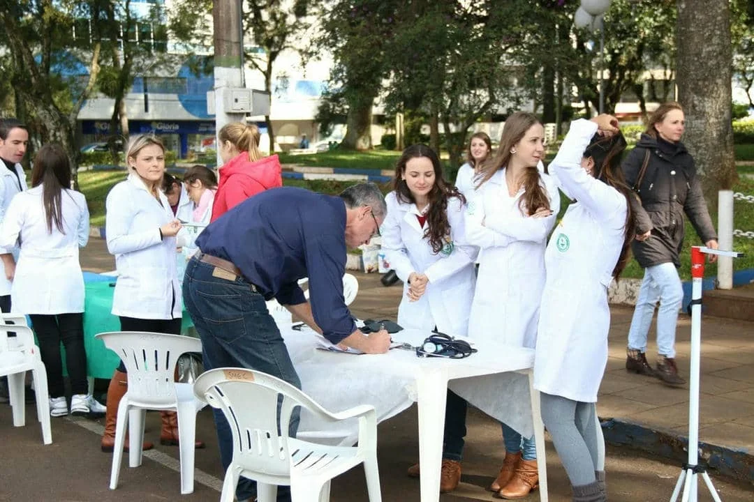 Cerca de 30 alunos do curso de enfermagem da Ulbra estão participando do evento, com orientações e exames de verificação da pressão arterial e teste de glicemia capilar. Segundo a coordenadora do curso, Juliana Marchiori Lara, fazer esse trabalho na comunidade é uma ótima maneira de passar o dia do enfermeiro, comemorado hoje (12). “Os alunos montaram também uma simulação de como uma vítima de acidente fica após um acidente grave. Eles montaram um mini hospital, com soro, paciente. O nosso principal objetivo trabalhar e cuidar das pessoas”, comentou.