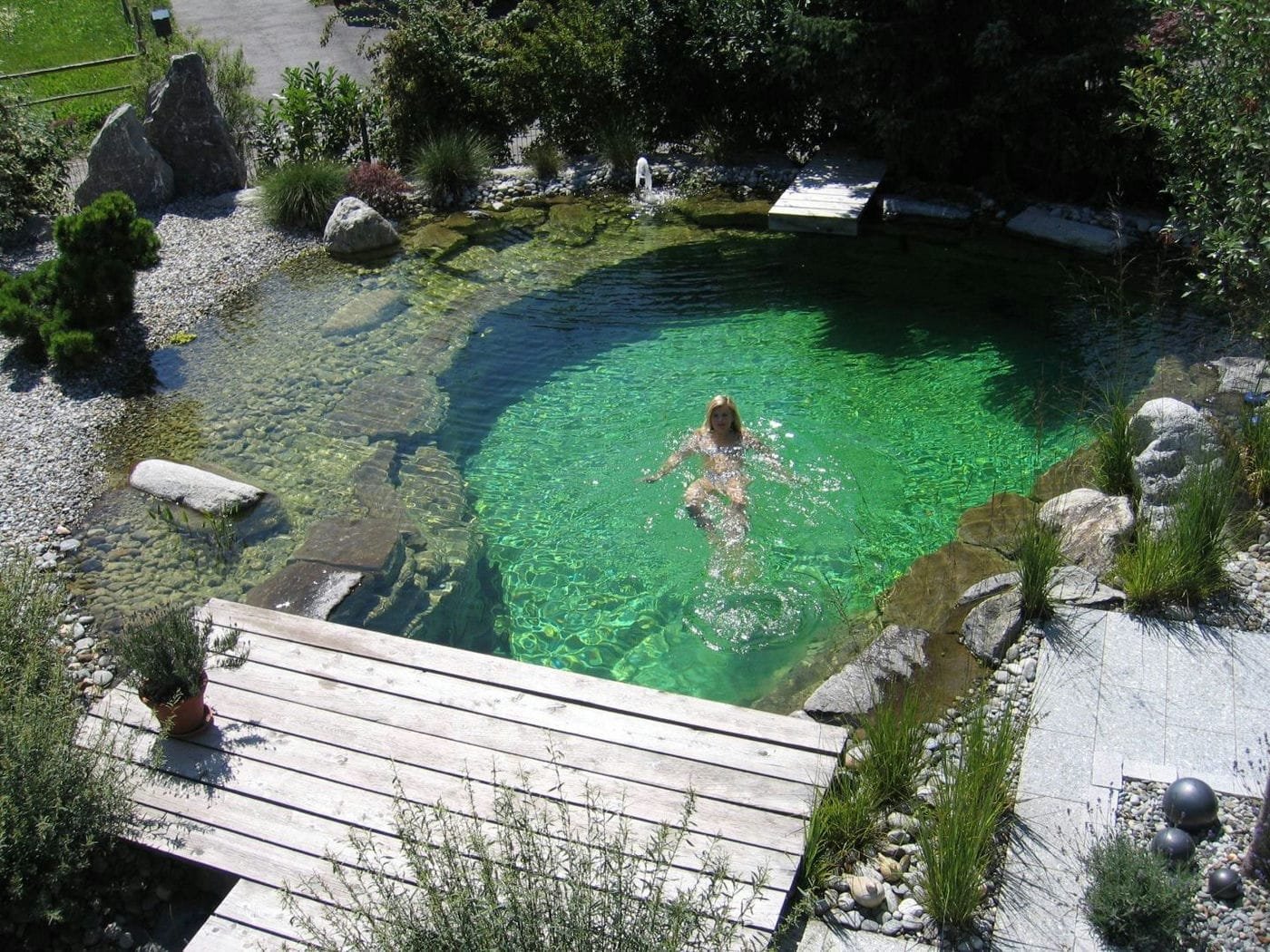 Se você tem preocupações com o meio ambiente, então pense numa piscina biológica, onde  a manutenção fica inteiramente a cargo de plantas aquáticas que asseguram mergulhos 100% verdes e sempre refrescantes. São piscinas parecidas com os lagos artificiais, escavadas no terreno e protegidas por uma tela impermeável de e]alta qualidade, não requerem cloro nem filtros, onde as plantas aquáticas são colocadas numa área da separada que garantem a limpeza e manutenção da própria piscina, através da libertação do oxigénio que realiza o processo de fotossíntese.