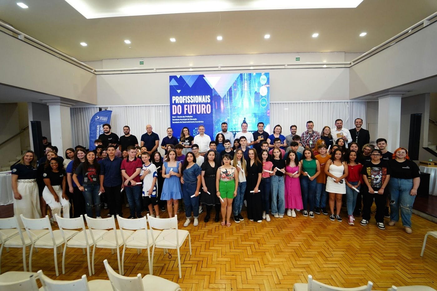 A Prefeitura de Passo Fundo realizou nesta quinta-feira (30), a formatura de alunos de 40 cursos do programa Escola das Profissões. Criada em 2022 para dar oportunidades de qualificação às pessoas no mercado de trabalho, o programa já formou mais de 2 mil pessoas e encaminhou mais de 500 para vagas de emprego.