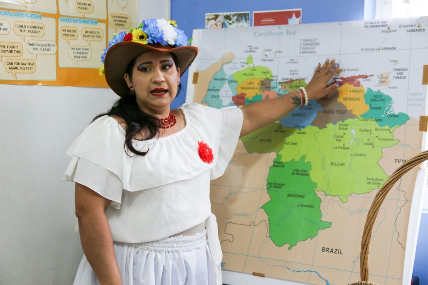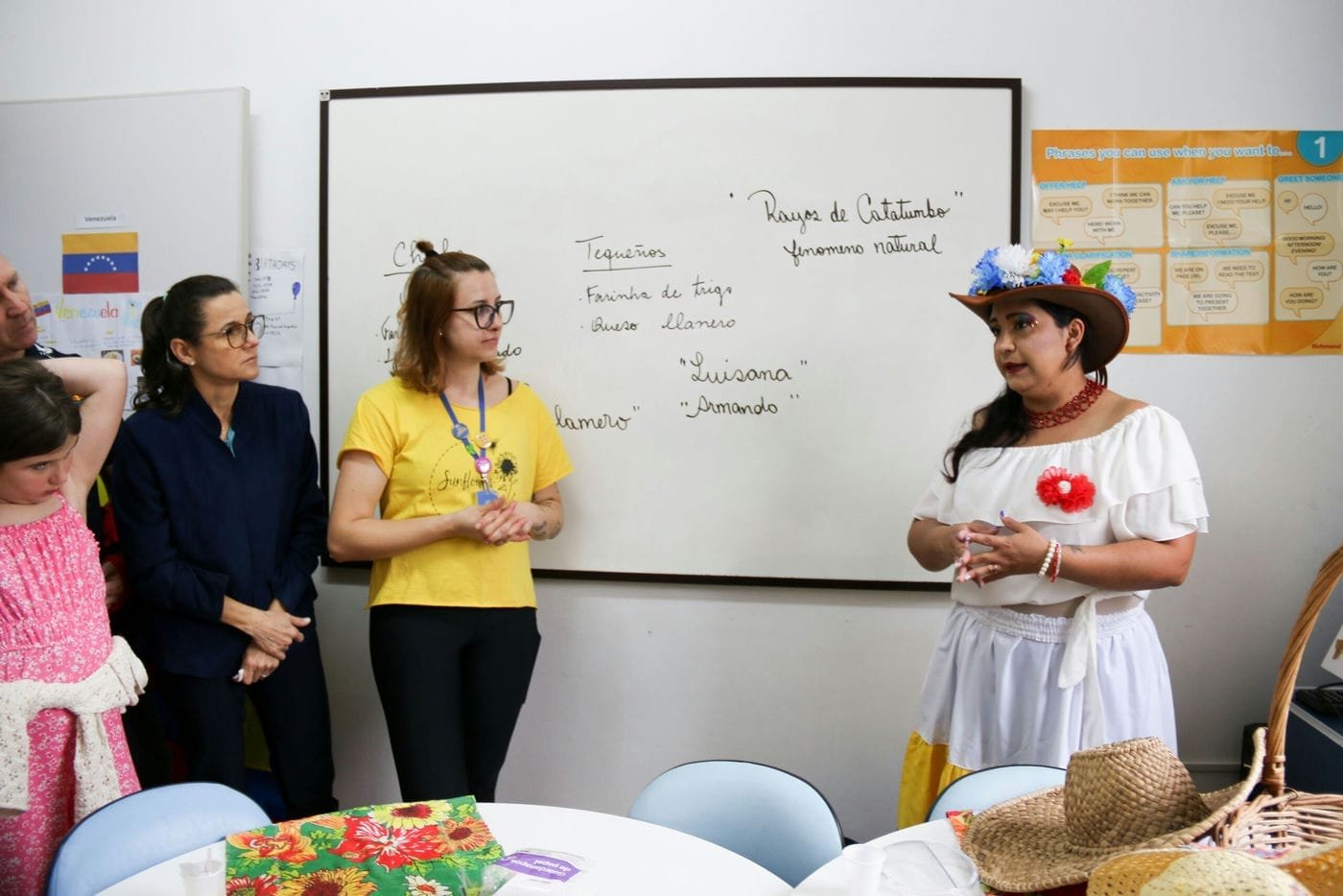 Para enriquecer ainda mais o evento, a escola convidou nativos de alguns países, incluindo imigrantes da Venezuela e do Senegal, que compartilharam suas histórias e experiências. Luisiana González e seu filho Armando trouxeram alguns pratos, como os Tequeños, e uma bebida doce chamada Chicha. Com as cores e a alegria da Venezuela em suas roupas, eles compartilharam fatos sobre seu país e sua história pessoal, que motivou a imigração para o Brasil. “O fato de a Venezuela estar em uma crise econômica muito grande e já não oferecer boas oportunidades para os meus filhos fez com que nós viéssemos para o Brasil. Primeiro vim sozinha e depois consegui trazer meus filhos, minha mãe e o restante da família. Hoje, graças a Deus, minha família está aqui”, conta.