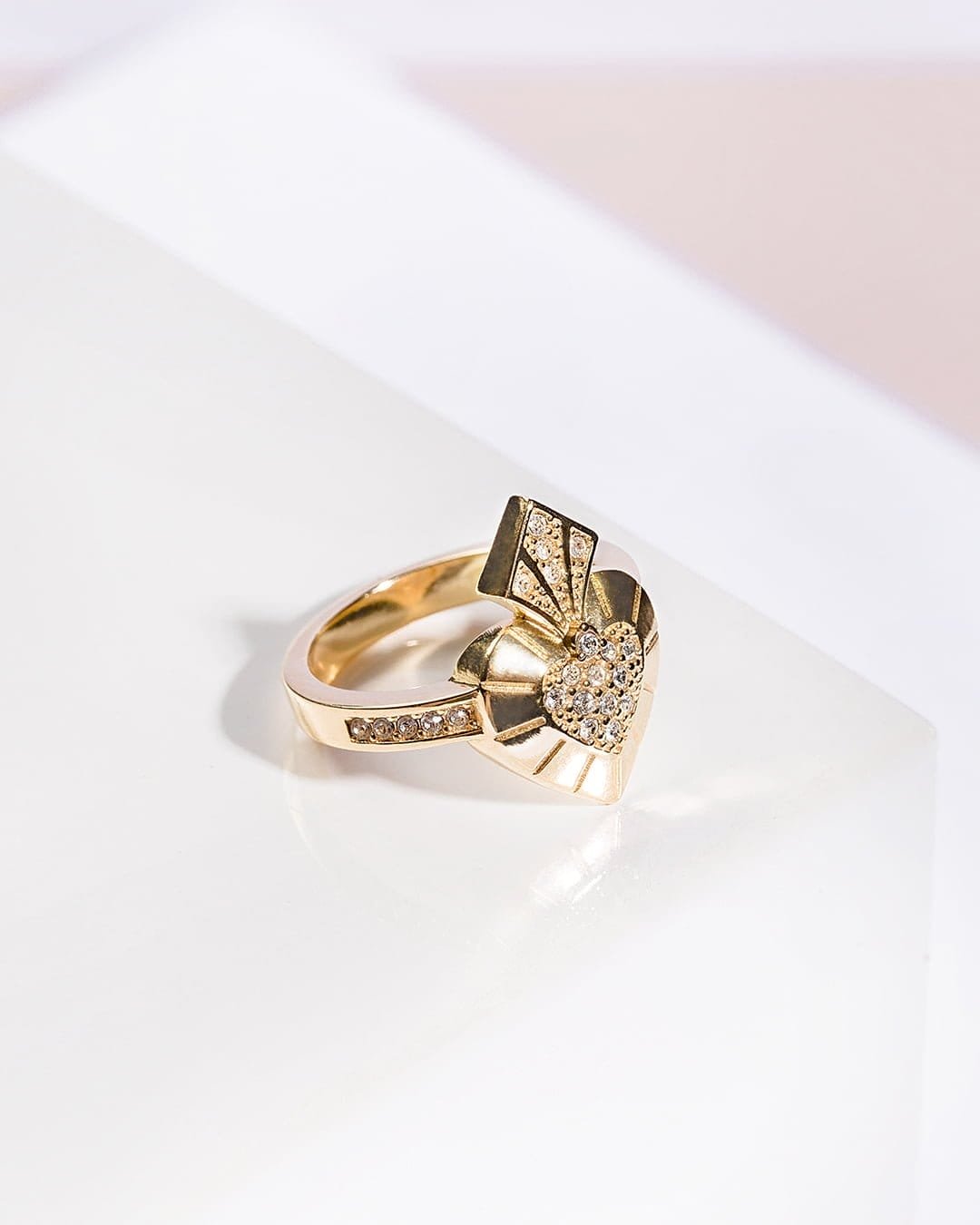 O ponto chave da linha está no coração como um amuleto, em alusão à joia que pode ser passada por gerações. Cada peça foi construída sobre a técnica da alta joalheria, respeitando ergonomia e forma.