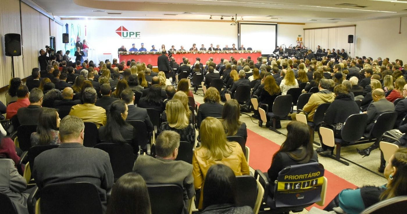 A Universidade de Passo Fundo (UPF), que completou 50 anos de fundação neste ano de 2018 e formou mais de 77 mil profissionais ao longo de sua trajetória, realizou, nesta sexta-feira, 20 de julho, a solenidade de posse da nova Reitoria. Foram diplomados para gerir a maior instituição de ensino superior do norte gaúcho a reitora Dra. Bernadete Maria Dalmolin e os vice-reitores de Graduação, Dr. Edison Alencar Casagranda; de Pesquisa e Pós-Graduação, Dr. Antônio Thomé; de Extensão e Assuntos Comunitários, Dr. Rogerio da Silva; e Administrativo, Dr. Cristiano Cervi. Além deles, tomaram posse os diretores das 12 Unidades Acadêmicas da Universidade e também foram apresentados os diretores de campi e coordenadores de cursos. Autoridades, convidados, professores, diretores de campi, alunos e funcionários prestigiaram o ato, que ocorreu no Centro de Eventos da UPF.