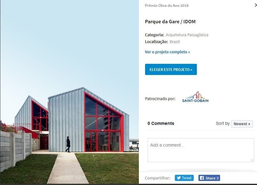 Para participar da cotação é simples. Bastar acessar o site http://oda.archdaily.com.br/br/2018, clicar na categoria Arquitetura Paisagística, selecionar o projeto do Parque da Gare e votar. Para isso, é necessário ter o cadastro no site preenchendo alguns dados, o que também pode ser feito através do login com a conta de facebook, mais rápido e prático.