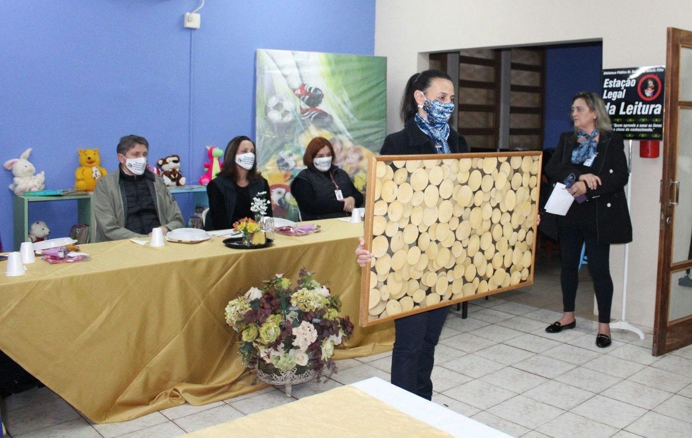 310 unidades foram destinadas à Secretaria de Desenvolvimento Social e entregues para a Secretária e Primeira Dama Andréia Schmitz. A Secretária de Educação Sandra Denise Bandeira recebeu em nome da SMEC 260 unidades, e a Diretora do Departamento de Cultura Silvana Freitas de Souza recebeu 160 unidades. Do total produzido, 340 unidades serão destinadas às rotinas e doação para leitores e visitantes da Biblioteca Guilherme Schultz Filho.