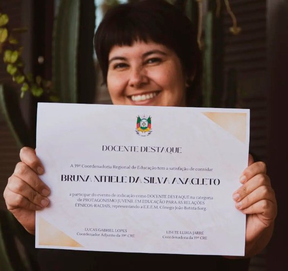 Outro reconhecimento importante que o projeto conquistou foi para a professora, que foi escolhida como Docente Destaque da rede estadual por conta do seu trabalho relacionado à educação étnico-racial. Ela acredita que ser uma mulher na educação é possibilitar diariamente que se pense muito para além da sala de aula. “Nosso trabalho, especialmente enquanto mulher na educação, não termina quando termina o nosso período, a gente constrói pontes para que nossos alunos possam ser tanto cidadãos melhores, mas especialmente seres humanos melhores. Quando a gente trabalha com educação, não estamos trabalhando simplesmente com o estudante na sala de aula, estamos trabalhando indiretamente com as famílias deles, com os lugares sociais de onde eles vêm e com os espaços que eles ocupam. Então eu acredito que esperançar essa educação, para que seja uma educação libertadora é nosso grande papel na educação. Quando a gente fala para uma criança, para um adolescente, que a gente acredita nele, a gente está acreditando inclusive num mundo melhor. Acho que ser educadora e trabalhar especialmente com essas temáticas é uma possibilidade de ‘esperançarmos’ outro mundo. Dar espaço para os alunos, dar autonomia, escutar suas histórias e suas demandas é fundamental para uma educação significativa”, finaliza a professora.